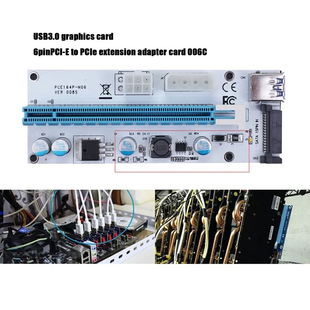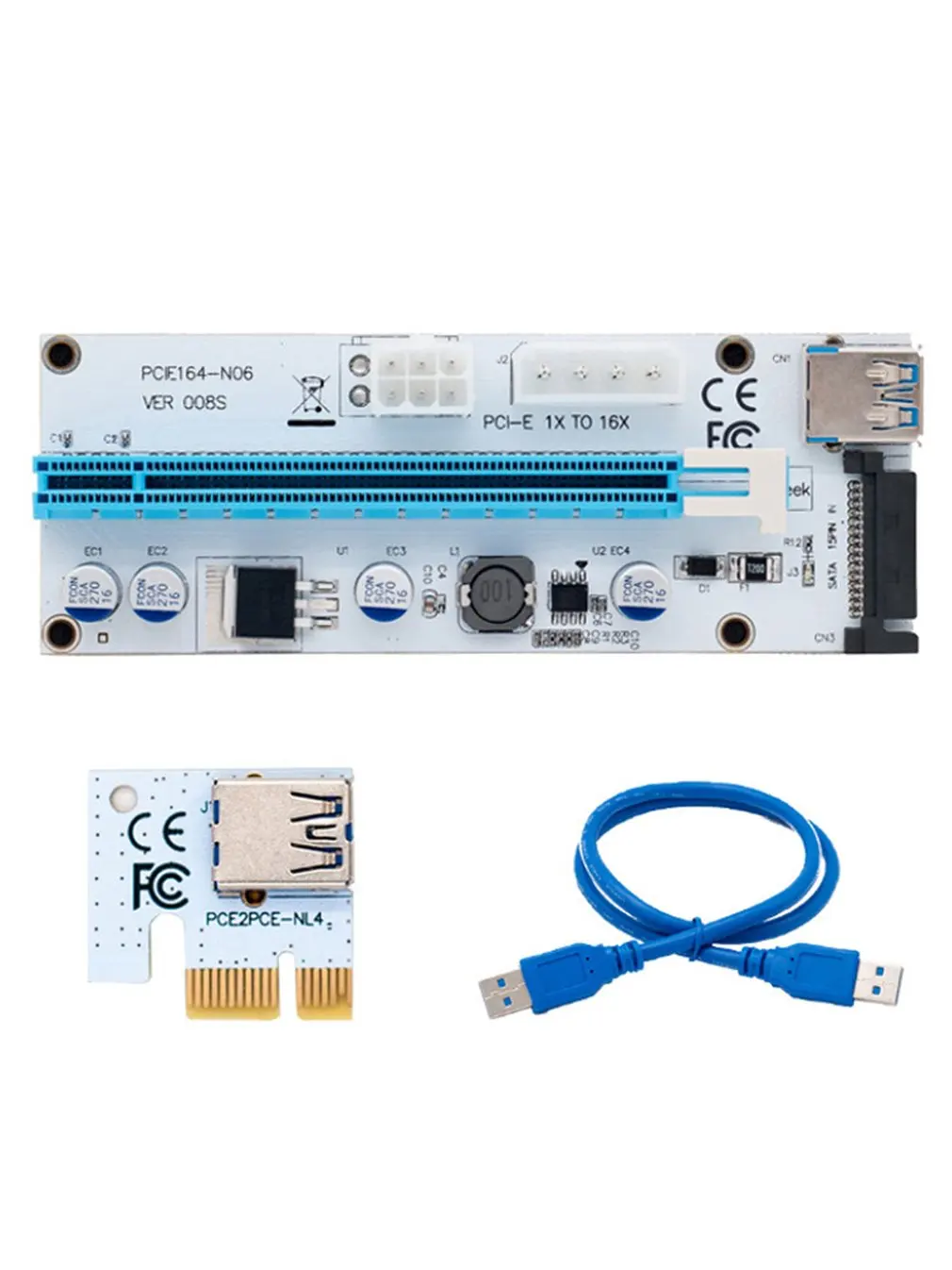 Райзер VER008S 3 в 1 Molex 4Pin SATA 6PIN PCIE PCI-E PCI Express, карта 1x до 16x, USB 3,0, кабель для майнинга биткоинов
