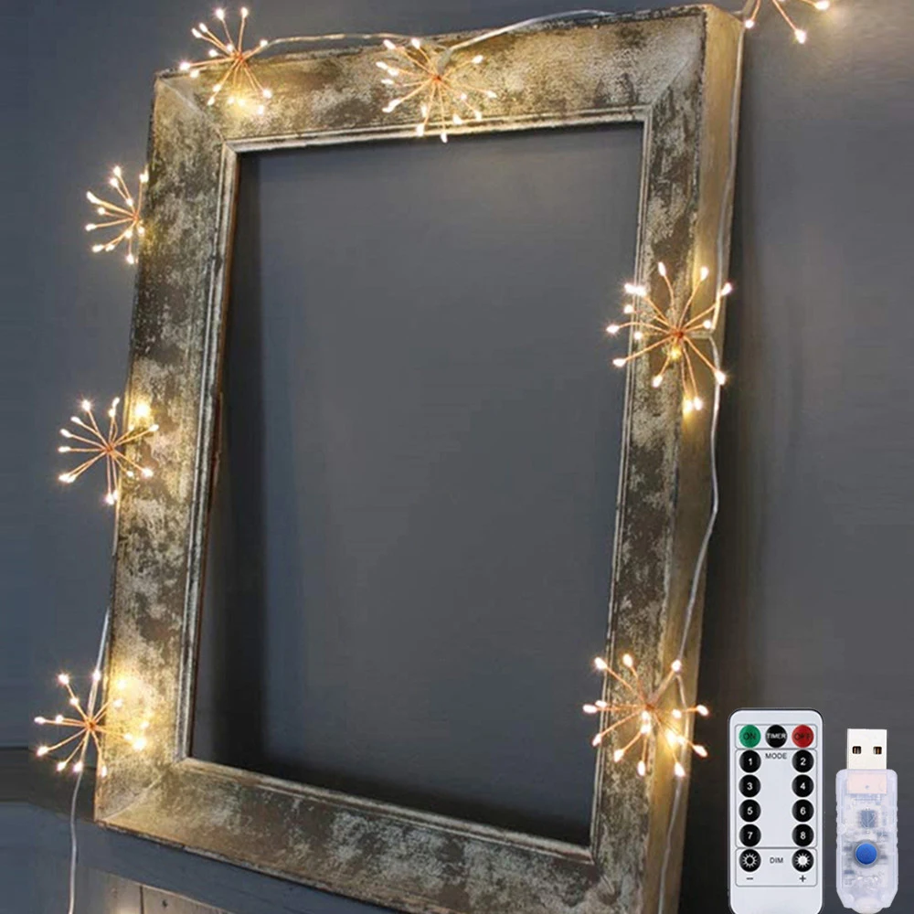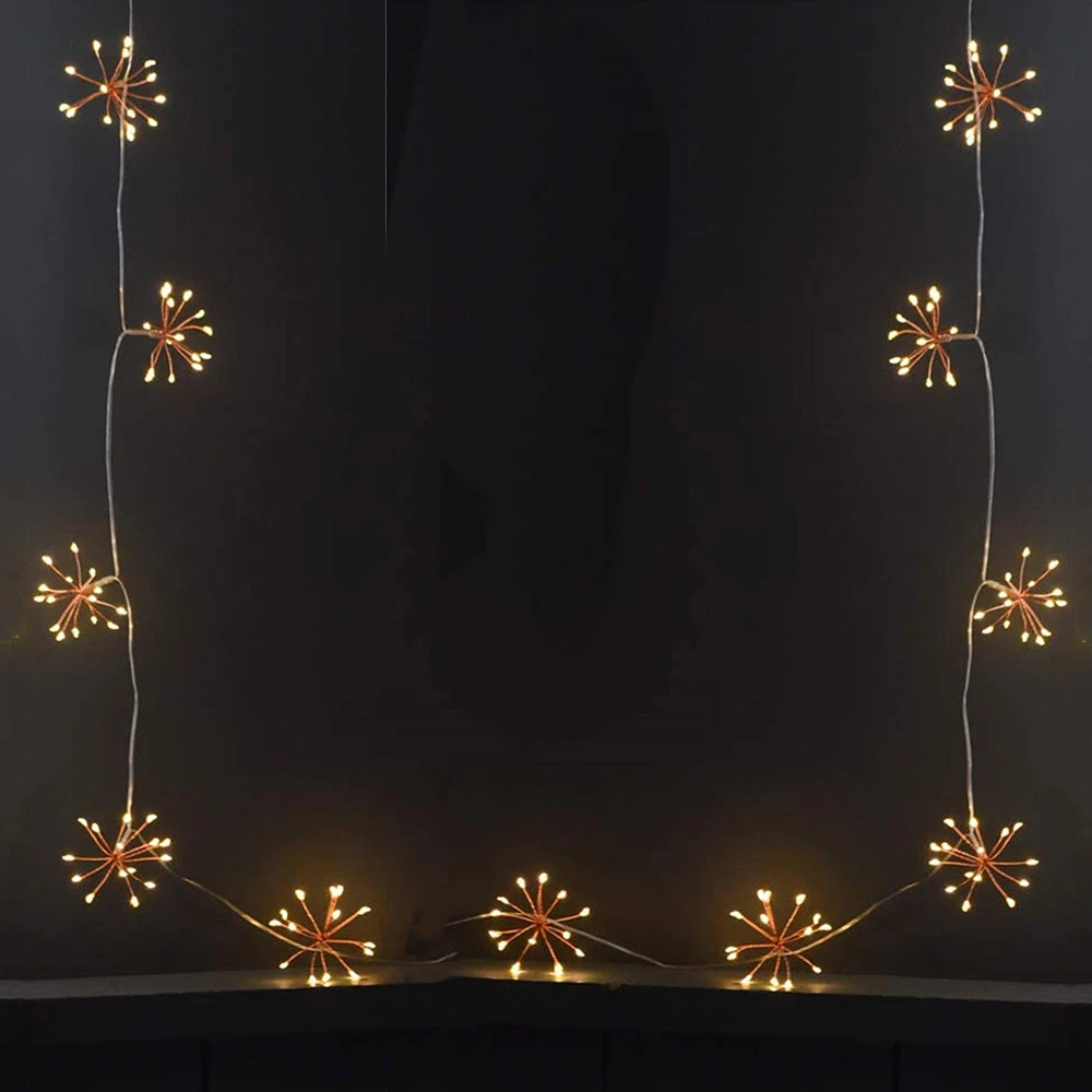 Светодиодная гирлянда с фейерверком, теплый белый фейерверк из медн...