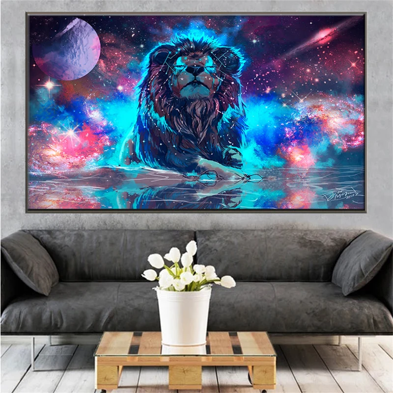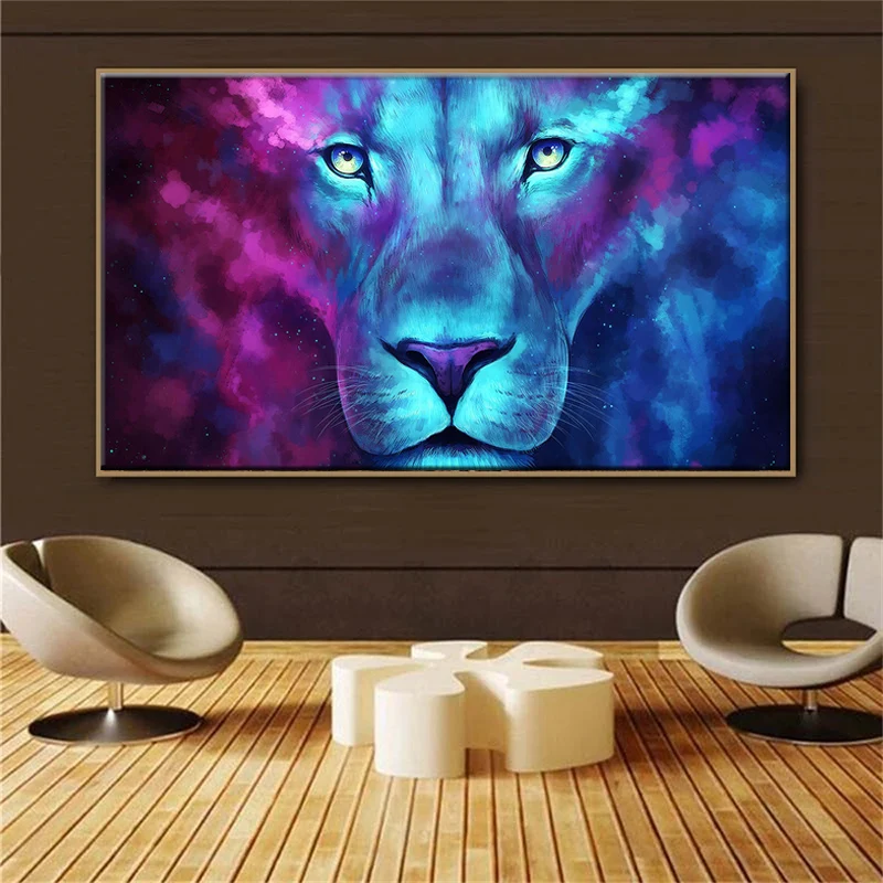 Цветная планета светящийся Лев животные холст большого размера живопись современное животное картина искусство на стену постер для гостиной настенное искусство