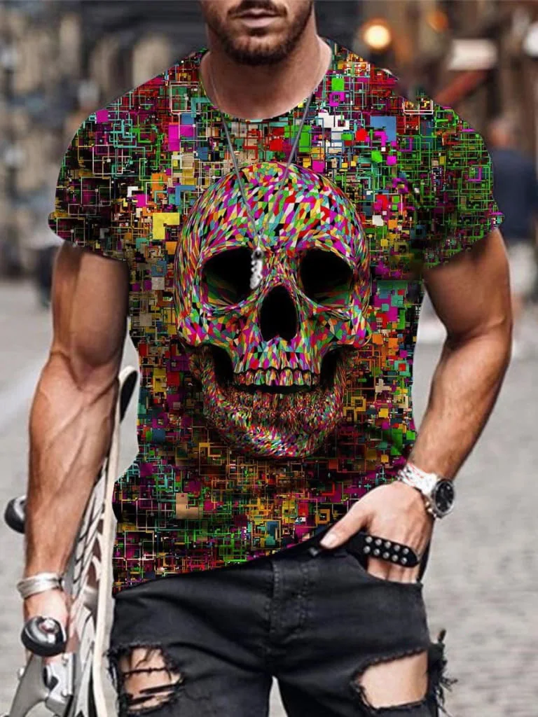 Футболка мужская с 3D-принтом черепа, уличная тенниска с коротким р...