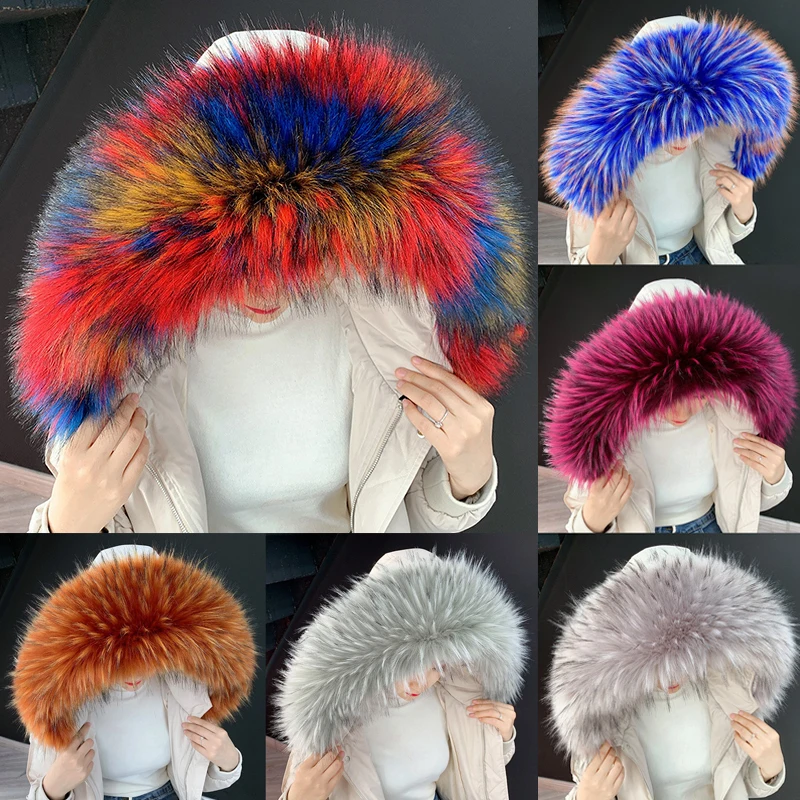 Разноцветный шарф из искусственного меха, женский шарф из искусственного меха енота, зимний меховой шарф с капюшоном, модная шаль, модное зимнее пальто, меховые воротники