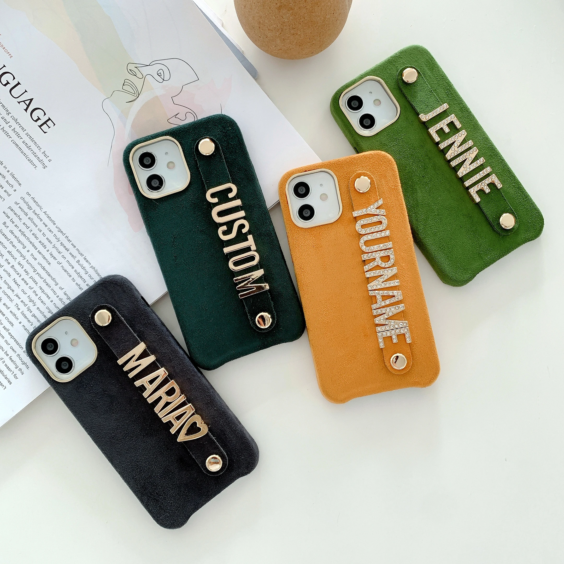 Роскошный кашемировый кожаный чехол для телефона с именем на заказ,...