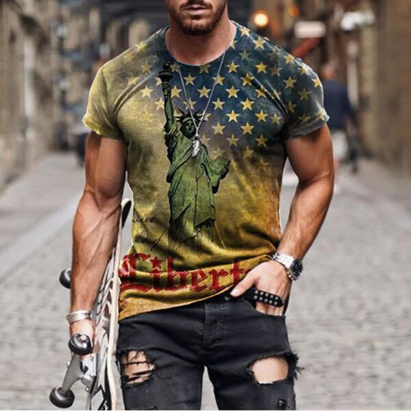 Мужская популярная Повседневная футболка с цифровым 3D принтом и коротким рукавом, модная трендовая Спортивная футболка с 3D принтом