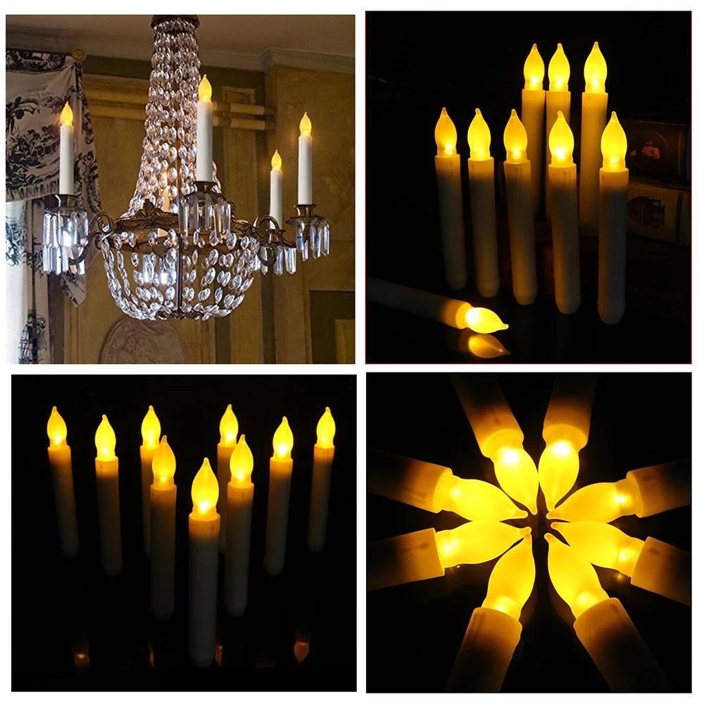 Функция:1. Беспламенные конусные свечи, каждая свеча требует батарейки АА (не входят в комплект), которые можно использовать в любом месте, добавляя теплую белую и романтическую атмосферу.2. Свеча имеет теплый белый мигающий светильник. Вы можете повесить эти конусные свечи на батарейках с леской от потолка (или люстры).3. Широко используется: они также очень подходят для обеденных столов, церковных служб, дней рождения, свадеб, каминов, рождественских украшений