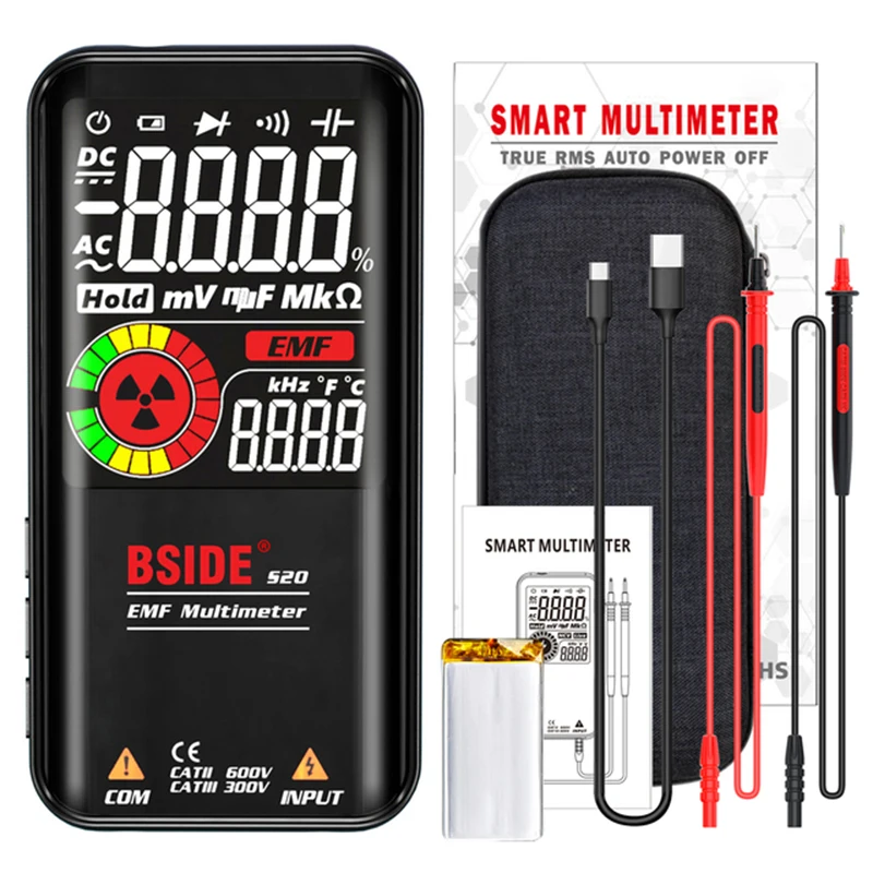 Цифровой мультиметр BSIDE, профессиональный интеллектуальный тестер напряжения постоянного и переменного тока, конденсатор сопротивления, диода, бесконтактного напряжения, Гц, EMF, детектор излучения