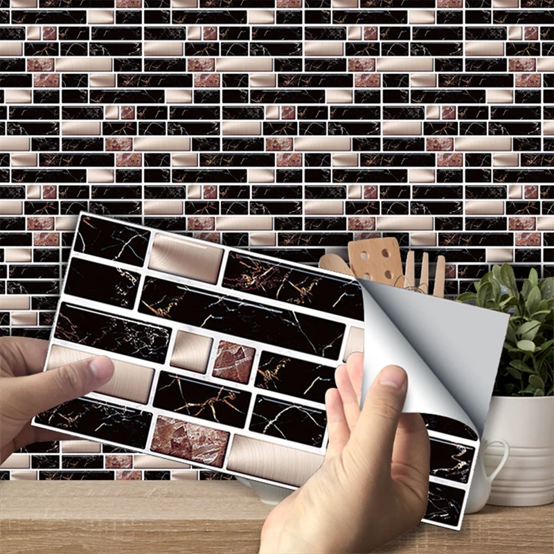 Наклейки для керамической плитки, декоративные водостойкие 3D Самоклеящиеся настенные наклейки для кухни и ванной, маслостойкие и влагостойкие обои