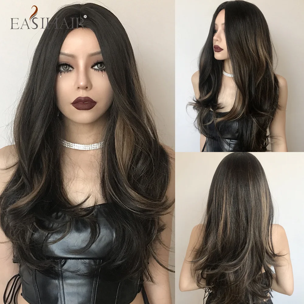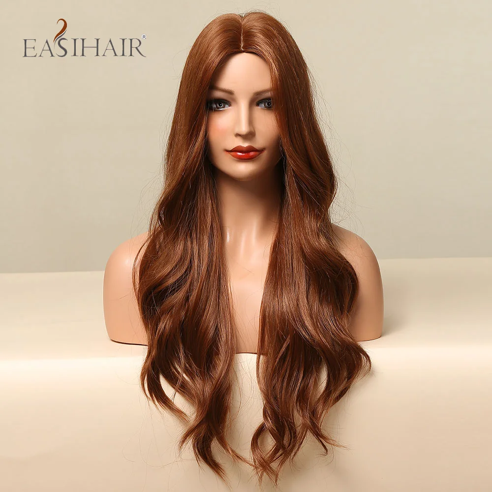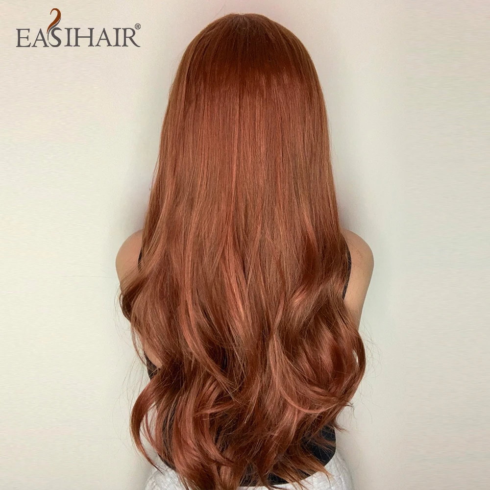 EASIHAIR красный коричневый длинные волнистые синтетические парики для женщин имбирь Оберн жаростойкий косплей парик Средняя часть естественный вид