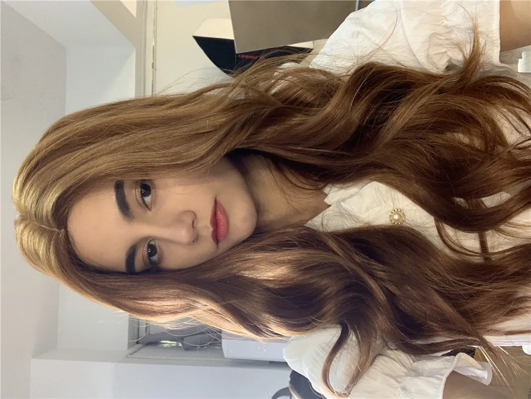 Длинные волнистые синтетические парики для женщин, жаропрочный парик для косплея, средней части с естественным внешним видом, красно-коричневого цвета