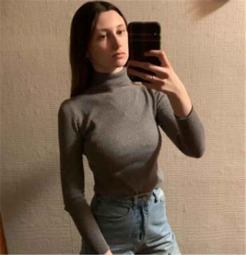 Осень-зима 2021, женские свитера с высоким воротником, тонкий пулов...