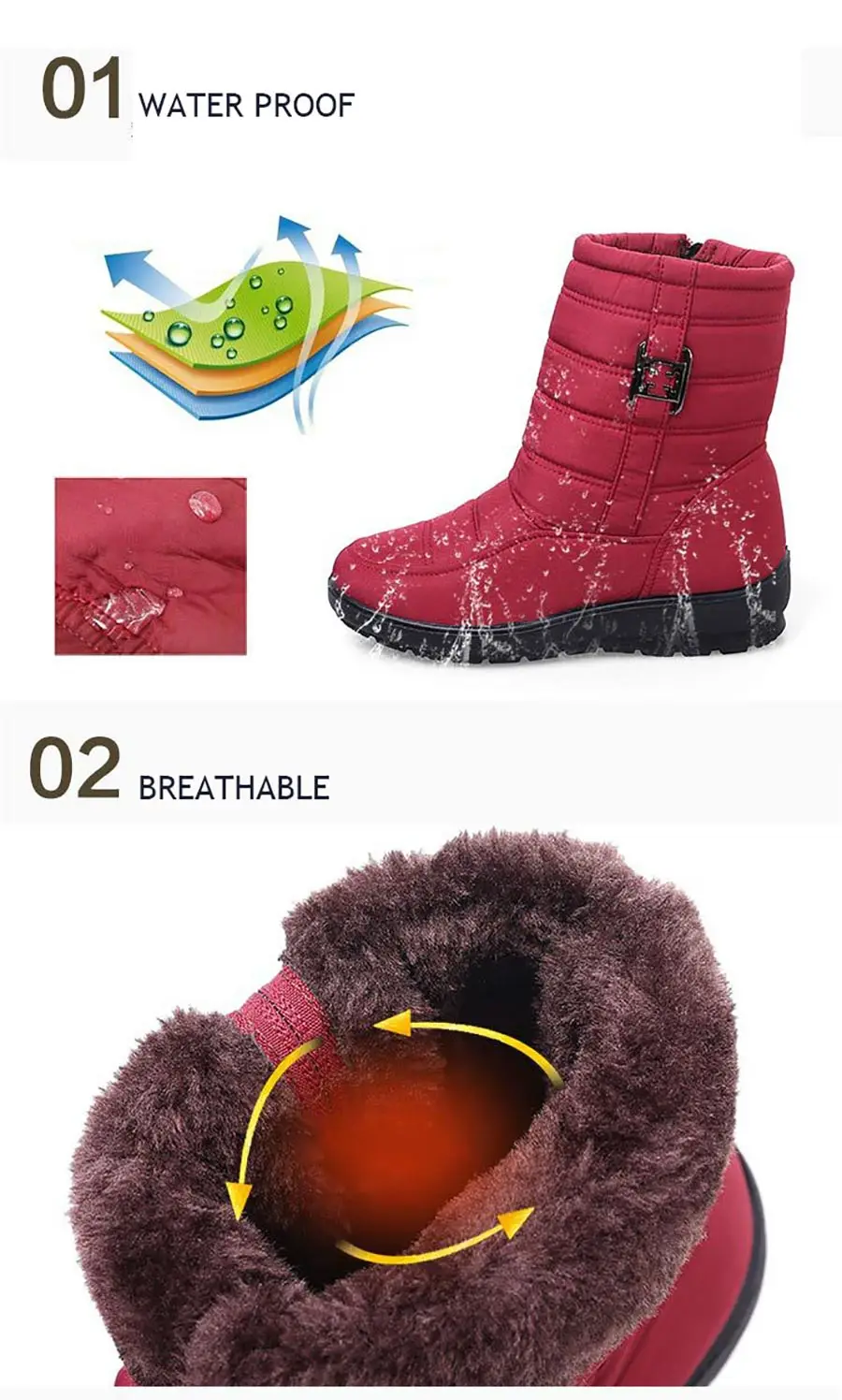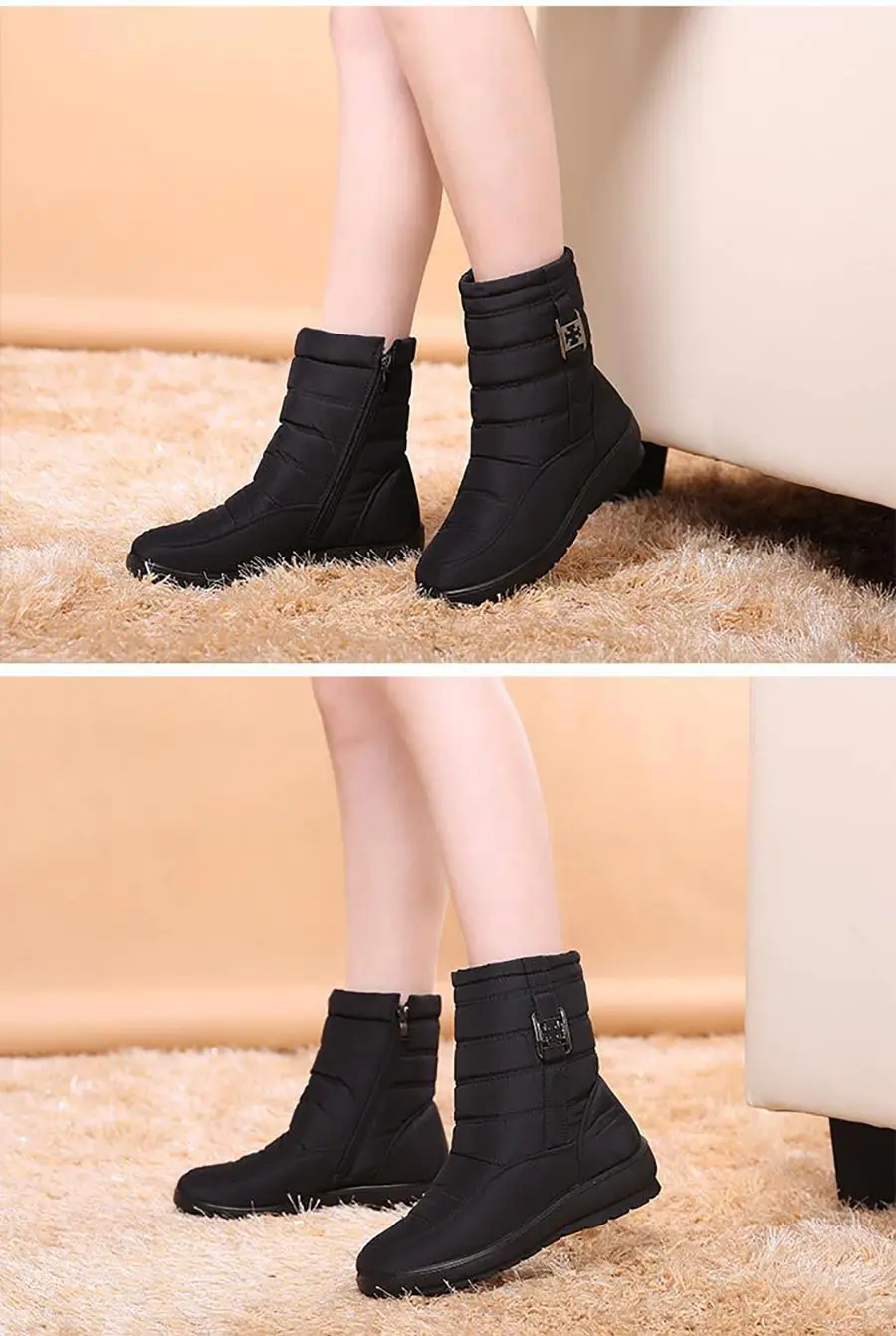 Женские ботинки, водонепроницаемая обувь для женщин, пушистые женск...
