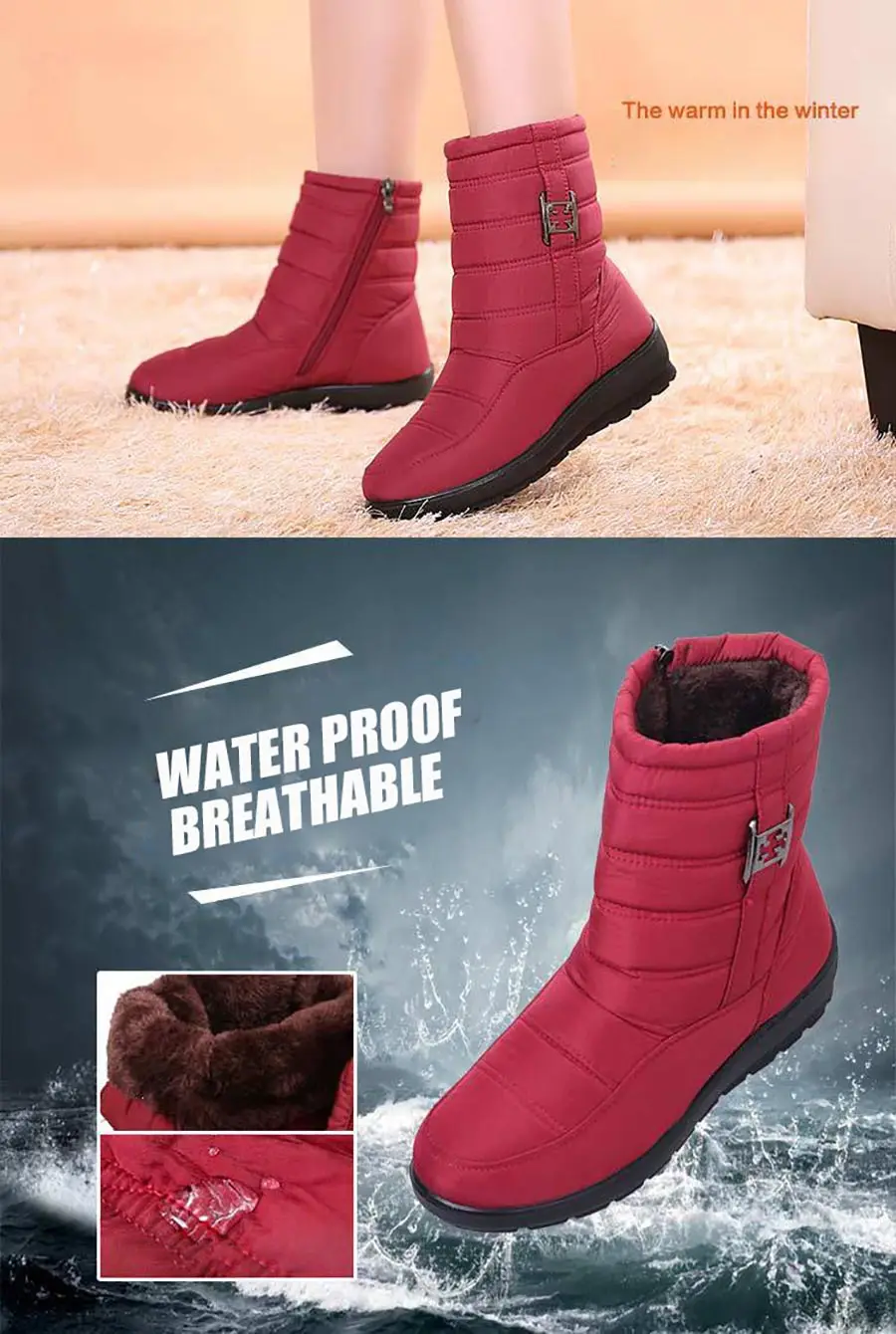 Теплые женские ботильоны, водонепроницаемые женские зимние ботинки,...