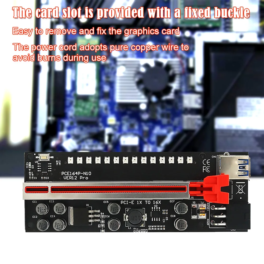 Улучшенная видеокарта VER12 Pro PCIE Райзер, графическая плата расширения, 6-контактный адаптер питания, цветной светодиодный PCI-E 1X до 16X Райзер для майнинга BTC