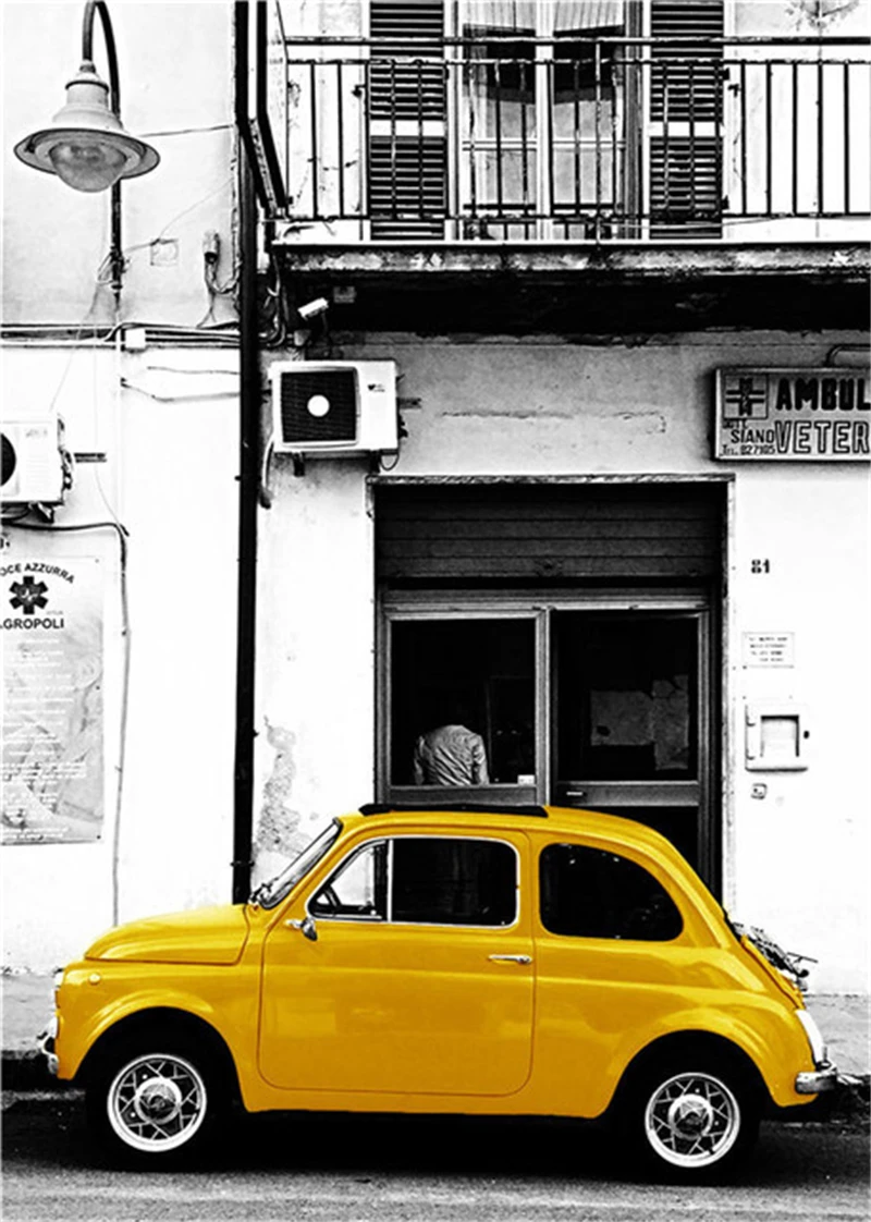 Абстрактный желтый автобус автомобиль башня зонтик Холст Картина скандинавский черный и белый плакат настенное искусство для гостиной спальни Декор