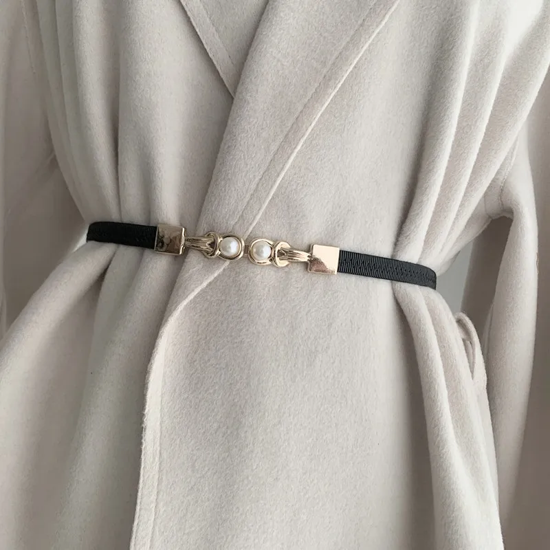 Женский эластичный тонкий пояс с жемчужной двойной пряжкой пояс для женщин эластичный пояс для платьев рубашек аксессуары для одежды