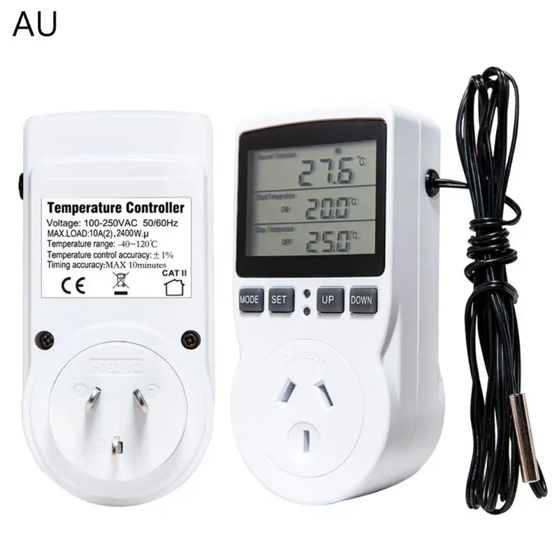 1. ФункцияВнешний температурный детектор может обнаруживать температуруУстановите температуру начала и остановкиВремя цикла, время запуска и остановки, таймерОн широко используется в интеллектуальном управлении, таких как углеродное отопление, аквакультура, теплица, домашняя жизнь и другие места. 2. Технические параметрыНапряжение 110V ~ 230V AC 50Hz/60HzМаксимальная нагрузка: 16A(2) 3680 Вт, (15A для американского типа)Диапазон температур: -40 ~ 120 °CТочность: +/- 1%Точность синхронизации: максимум 10 минутДиапазон температур: -40 ~ 120 °CОткрытая схема (или менее-40 °C), первый ряд экрана мигает дисплей "e1'', -40 ~-45 °C, дисплей-40 °CКороткое замыкание (или более 120 °C ), первый ряд экрана мигает displaty ''E2'', 121-129 °C дисплей 120 °CНиже-10 °C или выше 100 °C, это не будет отображать значение после запятойРежим охлаждения, температура запуска> Температура остановкиРежим нагрева, запуск температуры <температура остановки3. Кнопка режимаНажмите режим. ЖК-дисплей: режим контроля температурыРежим синхронизации F01-F04F01 режим синхронизации езды на велосипеде, время запуска (вкл.)/время остановки (ВЫКЛ.) время езды на велосипеде.F02 отсчитывает режим, теперь Ti.s выключается, задерживается (время начала) наF03 отсчитывает режим выключения, теперь Ti.s включен, задержка (стоп-время) выключен, завершение обратного отсчета, выключить выход и выйти из пробежкиF04 отсчитывает режим отсчета, теперь Ti.s Выкл, задержка (время начала) ВКЛ, после запуска задержка (время остановки) выкл, остановить время, чтобы закончить обратный отсчет, закрыть выход и выйти из операции 4. Функция коррекции температурыДлительное нажатие кнопки режима на электричестве, калибровка температуры в реальном времени через 2 секундыДиапазон коррекции температуры в реальном времени:-9,9 ~ 9,9 °CУдерживайте набор в течение 5 секунд для автоматического выхода, Не сохраняйте измененияДлительное нажатие кнопки MODE для выхода, сохранение изменения коррекции черенка