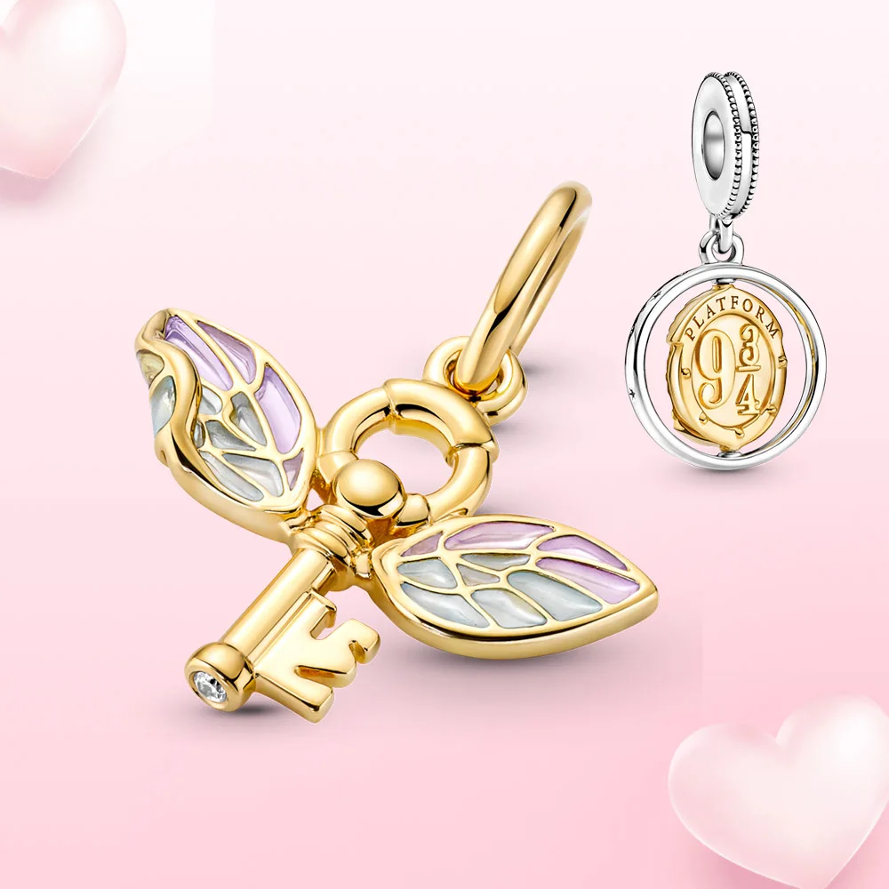 Новый серебряный шарм, подвеска в виде крылатого ключа, серебряный шарм, подвеска, Рождественский Плутон пэндандант, подходит для оригинальных ювелирных изделий pandora, женский браслет