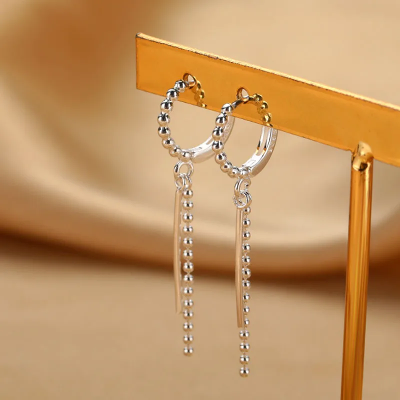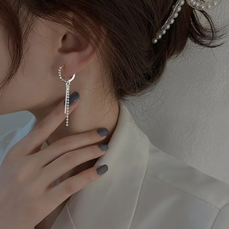 Серьги FOXANRY из серебра 925 пробы с защитой от аллергии, Модные Винтажные парные простые бусины, цепочка с кисточками, ювелирные изделия для вечеринки, подарок на день рождения