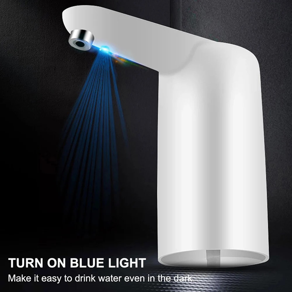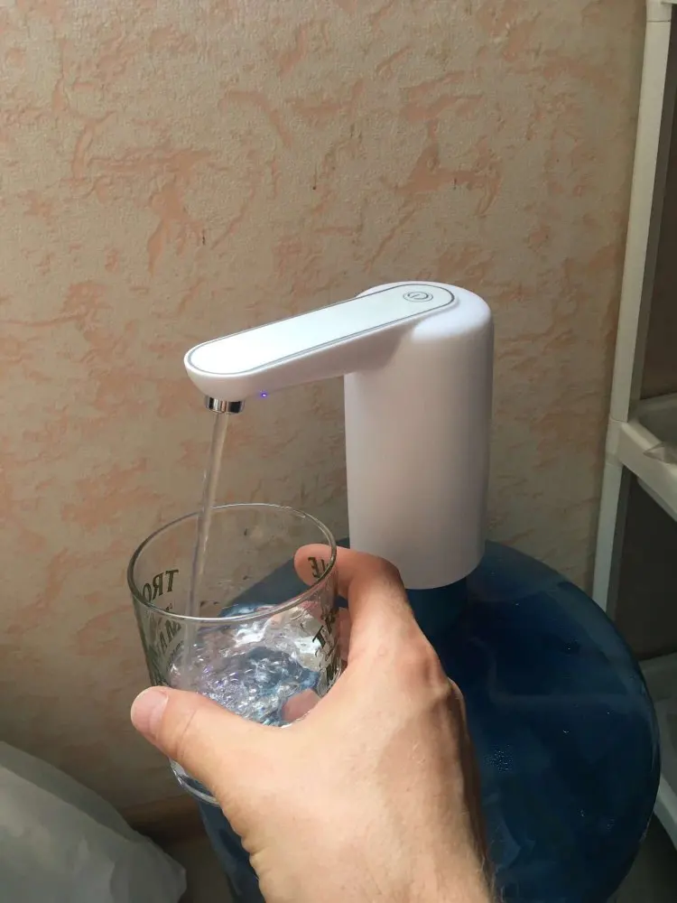 Цвет: черный (с контролем качества воды), белый (с синим ночным светильник)Операционной Напряжение AC/DC 4,2 VНоминальная мощность: 5 ВтВремя зарядки: 3-4 часаЗарядка: зарядный кабель Micro-USBПодходит для: 2,3,4,5 галлона бутылок с водойРазмер: 140*135*68 ммДлина шланга: 50 см