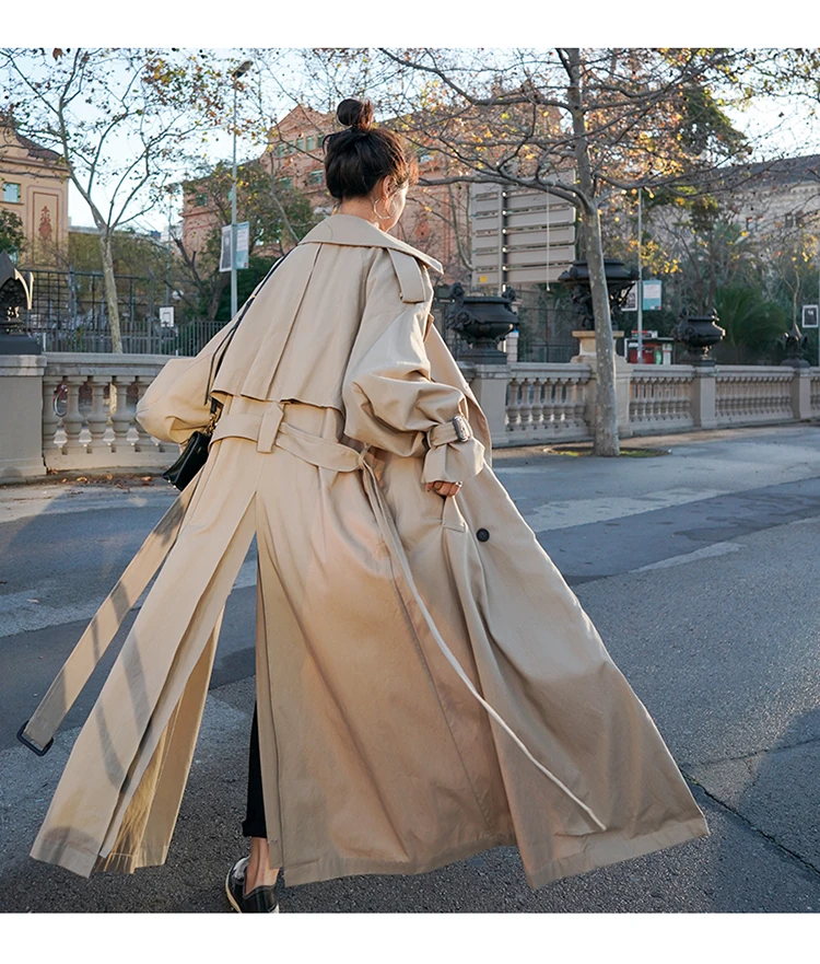 Женский двубортный плащ с поясом, Свободное длинное пальто большого...