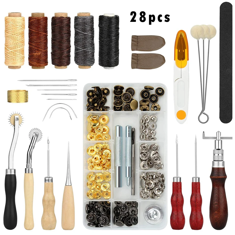 28 шт. инструменты для ремесла кожи с наконечником, вощеная нить, набор инструментов для застежки седла, инструмент для шитья и перфорации кожи