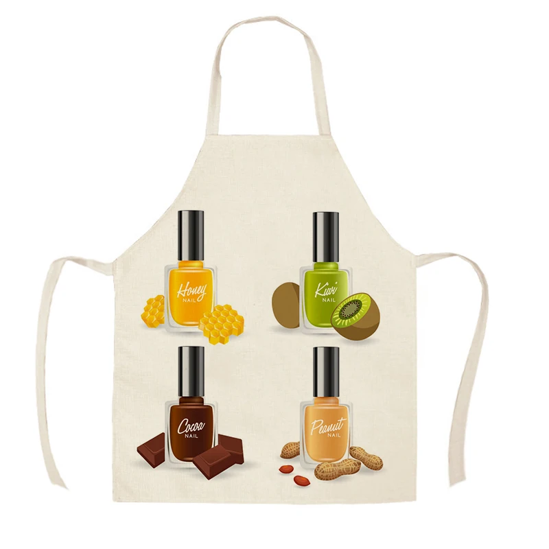 фартук для кухни для дома и кухни для парикмахеров Фартук с рисунком лака для ногтей, хлопково-льняной Дамский домашний фартук для приготовления пищи, барбекю, для магазина ногтей, без рукавов