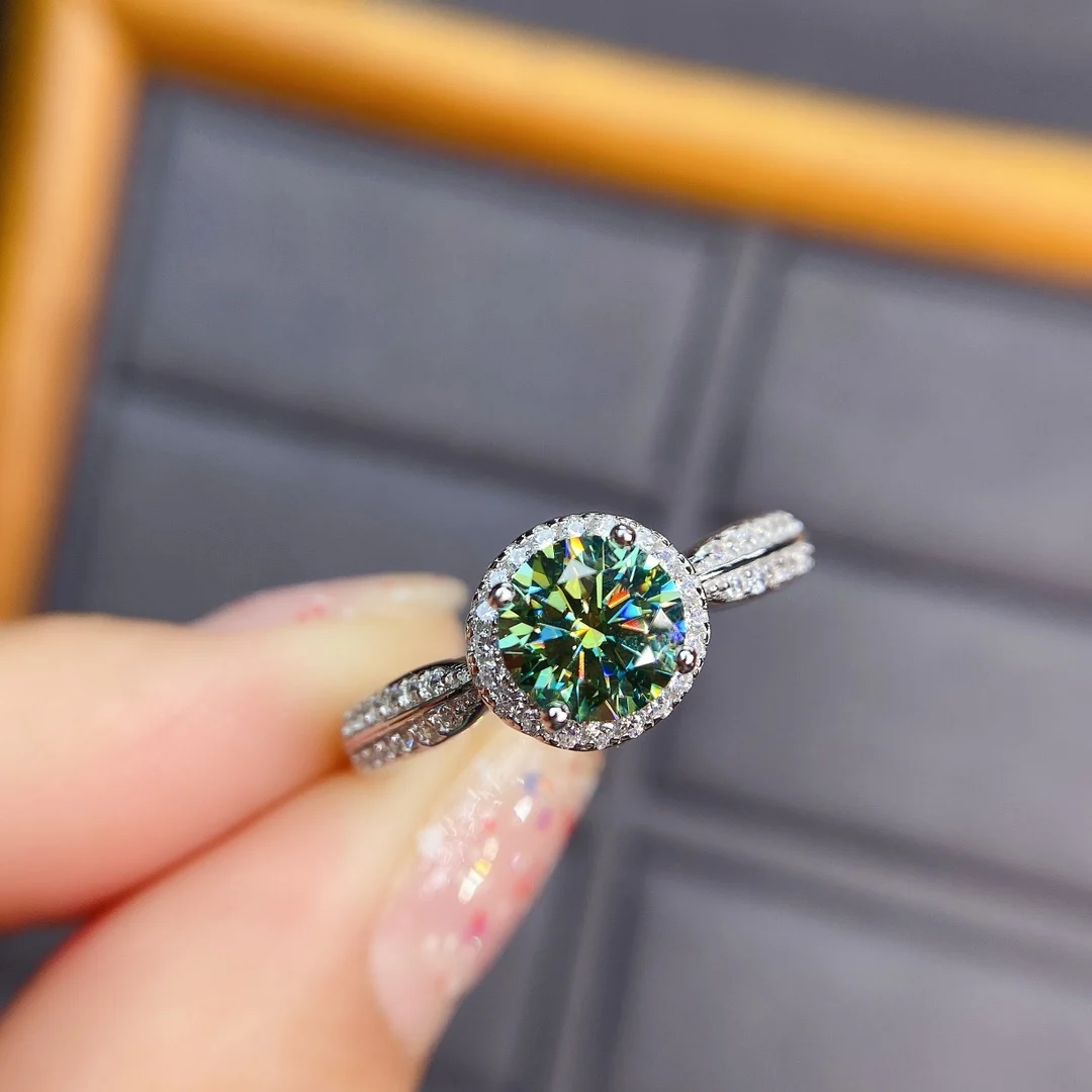 Серебро 925 пробы оригинального алмаза всего 2 карата зеленый Муасс...