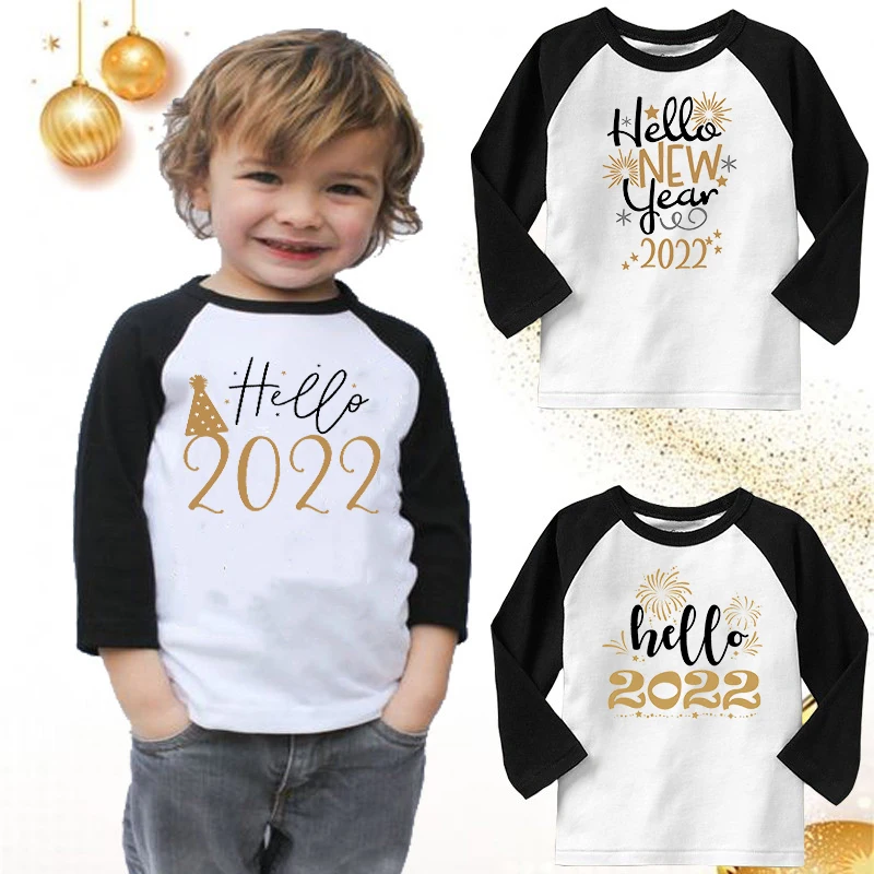 Детская одежда Hello 2022, футболка с длинным рукавом для мальчиков и девочек, детский наряд для новогодвечерние, свитшот, детская одежда, футболки