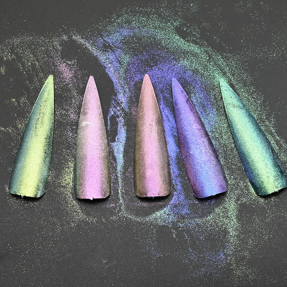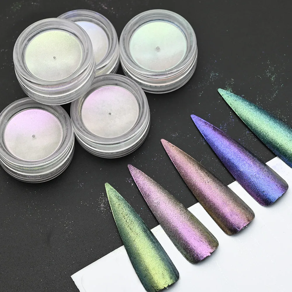 1Jar-Chameleon зеркальный порошок для ногтей 3 цвета можно изменить, голографический лазер для ногтей, 2,5 г/горшок порошок для ногтей пигмент и FB5