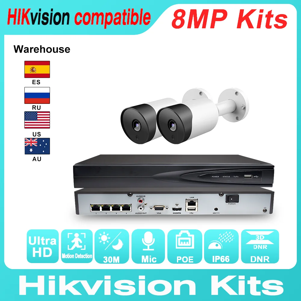 Hikvision совместимые наборы 2 шт. 8MP POE IP Bulllet Camera Hikvision оригинальный Сетевой видеорегистратор DS-7604NI-K14P DIY система видеонаблюдения