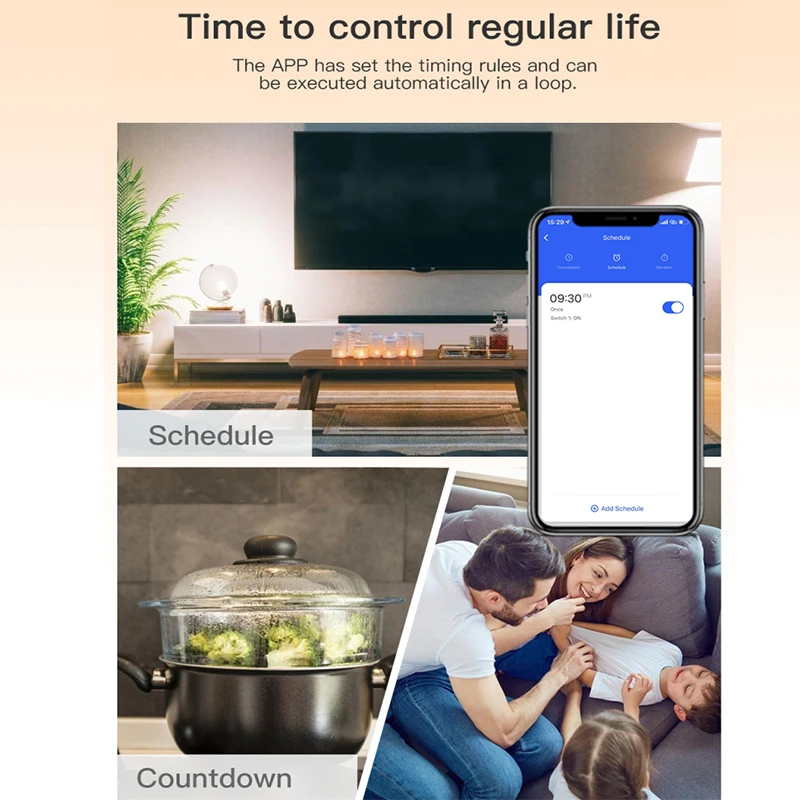 Вы можете управлять переключателем, временем, обратным отсчетом и другими функциями устройства через ваш мобильный телефон. Это можно заказать: Выключите свет в гостиной через 2 часа. 18:15 выключить духовку. Включите Бойлер в 21:00. Вы также можете установить время на устройство, когда вы не дома. (Приложение: Smart Life/TUYA Smart)