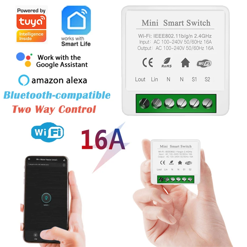 Мини-светильник ключатель Tuya 16 А с поддержкой Wi-Fi и голосовым управлением