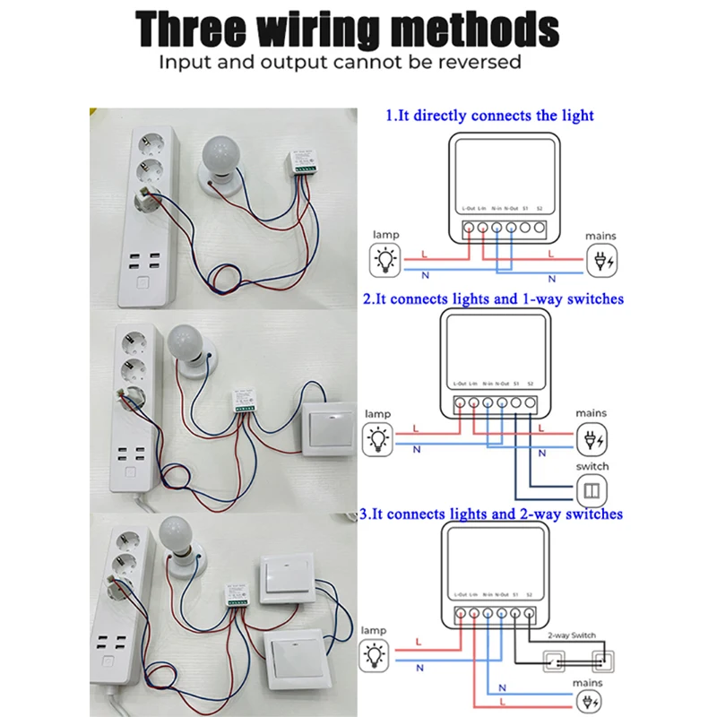 Его также можно подключить за переключателем для поддержки одного переключателя управления и двойного переключателя управления. Он может быть непосредственно установлен в коробке переключателя, чтобы скрыть модуль переключателя. Он также может быть установлен на двойном переключателе управления, не влияя на использование двойного переключателя управления.