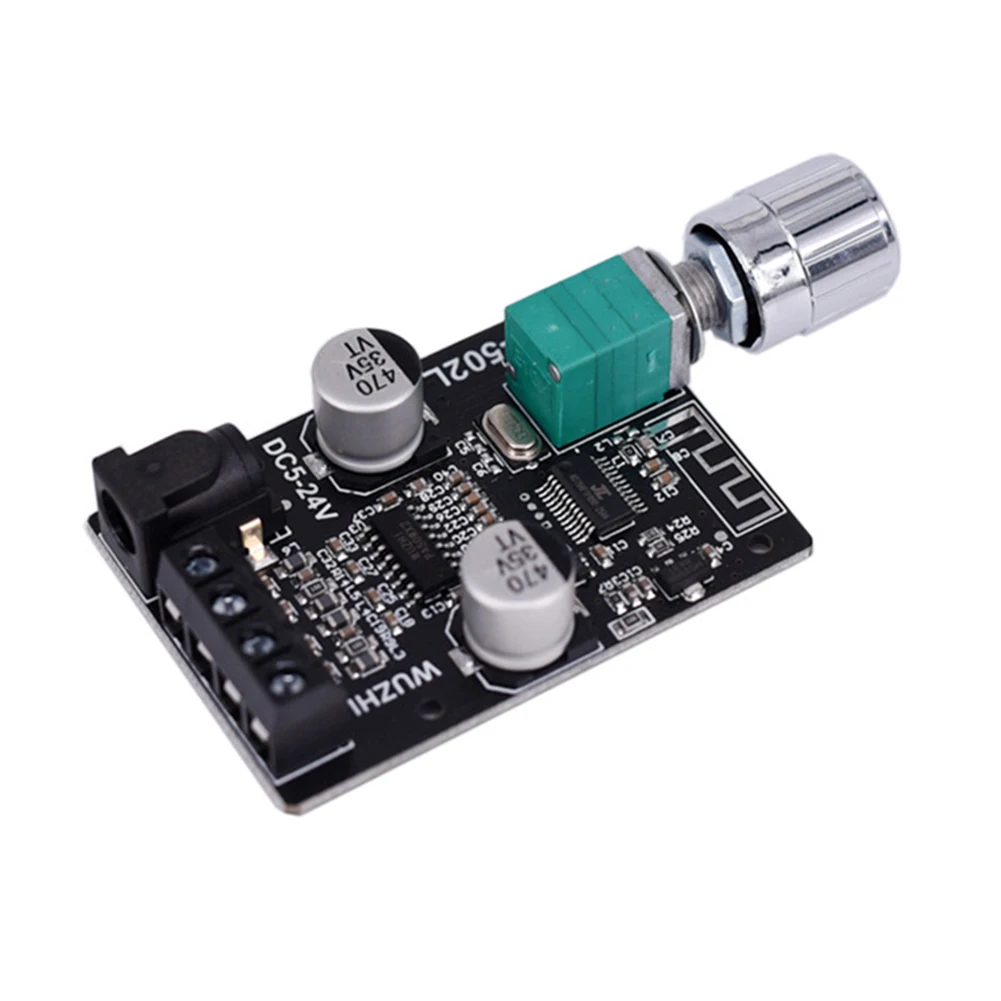 ZK-502L 2x50 Вт мини двухканальный динамик цифровой усилитель мощности плата беспроводной аудио стерео Bluetooth-совместимый 5,0 амперХарактеристика:Bluetooth-compatible5.0 версии, с более высокой эффективностью передачи и более длинным расстоянием передачи.Потенциометр регулирует громкость, с переключателем, удобно управлять громкостью, что очень подходит для динамиков DIY.Конденсатор 470uf35V твердый конденсатор, для обеспечения хранения энергии и теплоотдачи, стабильный и непрерывный источник питания является необходимым условием хорошего качества звука.Используется медный соединитель постоянного тока, который может выдерживать высокий ток и не генерировать тепло.Свинцовый провод с головкой постоянного тока совместим с входным интерфейсом питания этого продукта. Даже если у вас нет адаптера или аккумулятора постоянного тока, вы можете легко подключить его.Примечание! Оболочка-это материальная посылка, вам нужно собрать ее самостоятельно, а в материале предусмотрена посылка с отверткой.Спецификация:Модель: ZK-502LВерсия Bluetooth: 5,0Материал: доска из стекловолокна и электронные компонентыАдаптации источника питания напряжение: 5-24 вольт постоянного тока (9/12/15/18/24V адаптер переменного тока является необязательным, постоянное напряжение переменного тока в постоянный рекомендуется для высокой мощности)Адаптер динамика: 30-200 Вт, 4Ω, 8ΩКоличество каналов: левый и правый стерео (стерео)Bluetooth-совместимое Расстояние передачи: 15 м (без препятствий)Механизм защиты: защита от перегрева, защита от короткого замыканияЦвет: черныйВес: 50 гРазмеры: 55x38x17 мм/2,17x1,50 x 0.67inМеры предосторожности:Выключатель питания на плате-это переключатель в режиме ожидания. После выключения выключателя устройство находится в режиме ожидания низкой мощности. Чтобы полностью выключить питание или отключить вилку постоянного тока на машине, если она не используется в течение длительного времени.Ответы на вопросы:1. Как выбрать источник питания?Источник питания платы имеет ключевое значение. Чем выше напряжение, тем больше ток, тем больше выходная мощность, если у вас только 12 в 1 А, это может переносить 3-4 дюймовые динамики. Если вы старше 19 в 5А, без проблем 8-10 дюймов, мощность должна быть высоко оценена. Если напряжение слишком низкое, Звук легко вызовет искажения после усиления. Если ток слишком низкий, чтобы носить динамик, напряжение будет снижено, и работа будет ненормальной или качество звука будет плохим.Рекомендуется использовать источник питания 18V19V2 4 в с током выше 5А. Если у вас есть только блок питания 9V12V или 1A 2A, вы также можете использовать его с низкой мощностью. Будьте осторожны при использовании при максимальной громкости, это может привести к искажению и повлиять на качество звука.2. Как выбрать динамик?Обычные динамики обычно 8 Ом, не могут отличить положительную и отрицательную полярность, Эффект такой же, можно использовать 4 Ом. Если мощность вашего Рога мала, она может быть между 10 Вт и 30 Вт также может быть использована. Напряжение источника питания невелико, чтобы динамик не сгорел после громкого воспроизведения. Например, выберите источник питания ниже 15 В. Если вы являетесь динамиком 50 Вт-300 Вт, не беспокойтесь о проблеме горения динамика, вы можете выбрать источник питания 12-24 В, чем выше выбранное напряжение, затем чем больше выходной звук или мощность.3. 