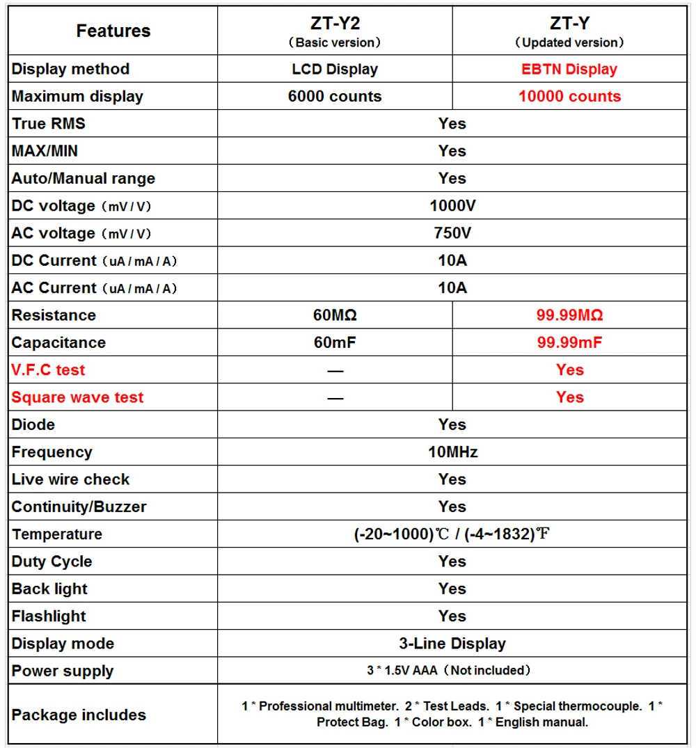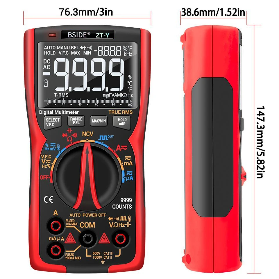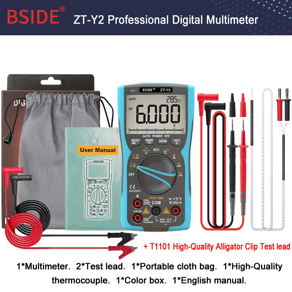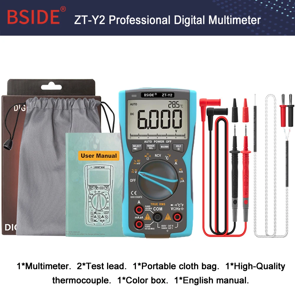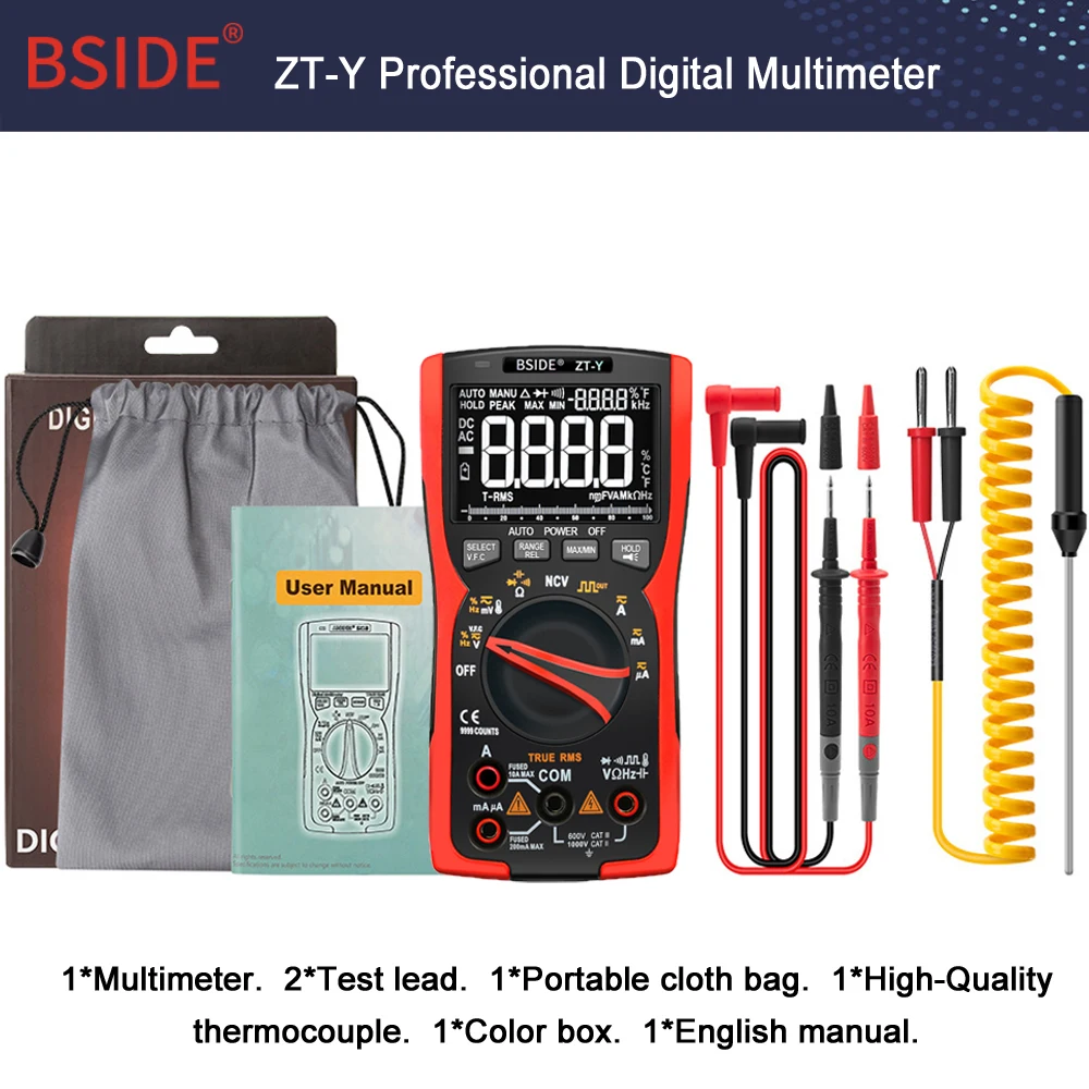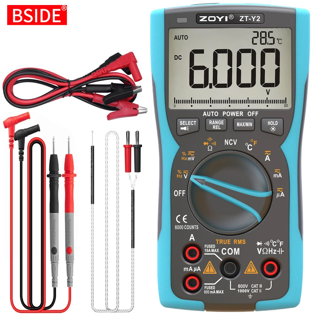 Профессиональный цифровой мультиметр BSIDE ZT-Y Y2 True-RMS дисплей Аналоговый тестер ток вольтметр конденсатор температура VFC NCV Hz метр