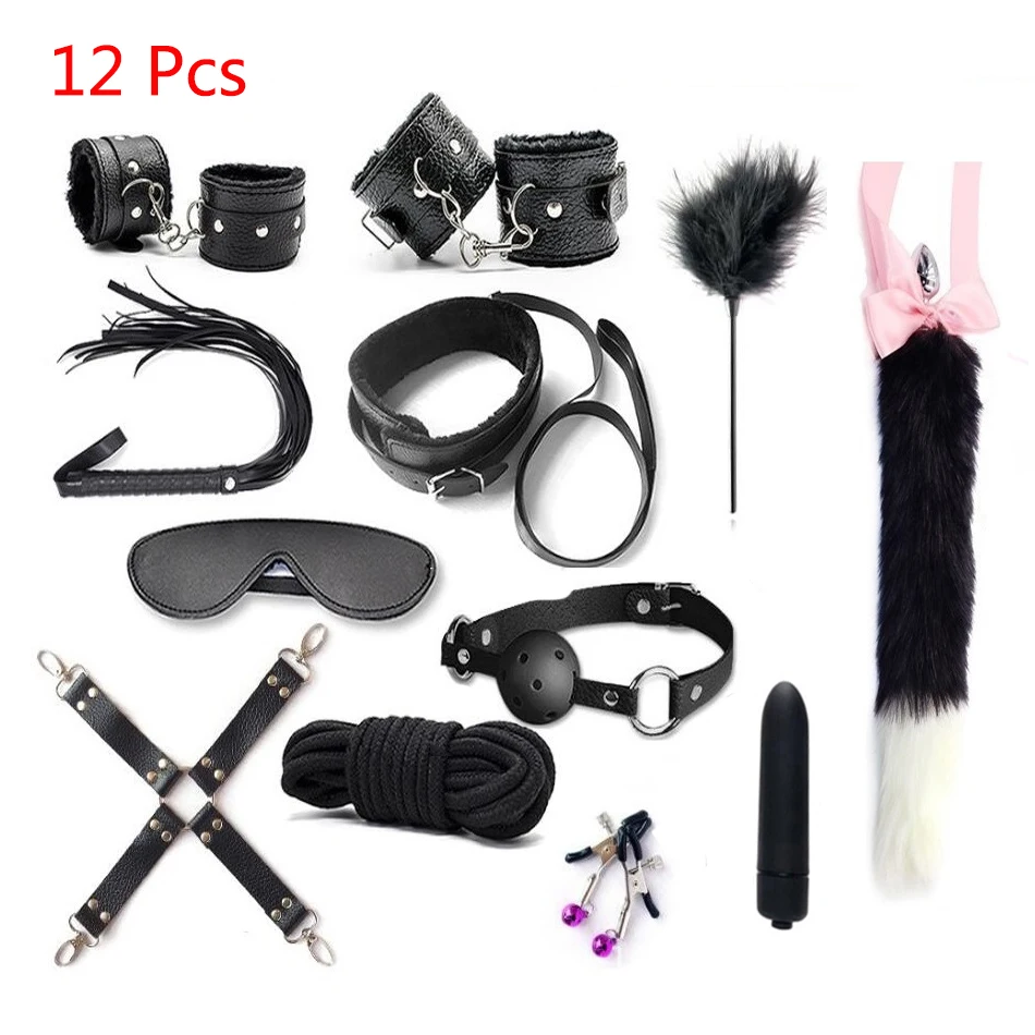 Секс наручники ошейник кнут кляп соски зажимы БДСМ Связывание веревка эротические взрослые секс магазин игрушки для женщин пары Анальный Анальная пробка хвост