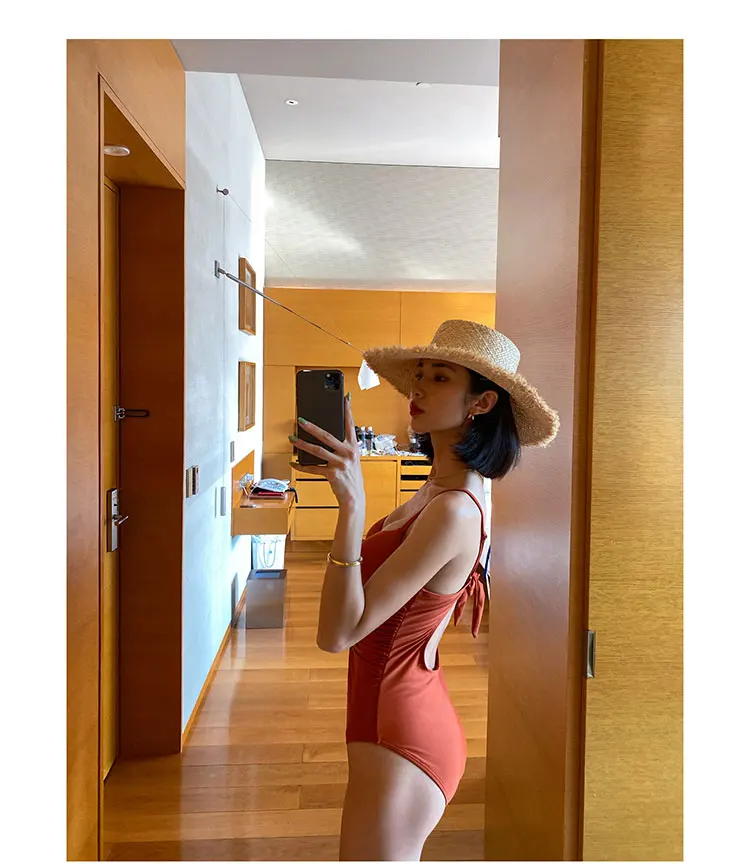 Цельный купальник в Корейском стиле, однотонный купальник, бандажны...