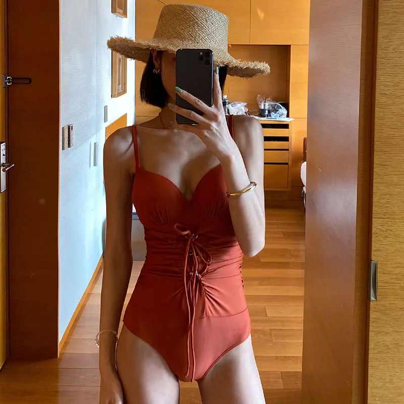 Цельный купальник в Корейском стиле, однотонный купальник, бандажный купальный костюм, летний купальный костюм, сексуальный Монокини, пляжная одежда с пуш-ап