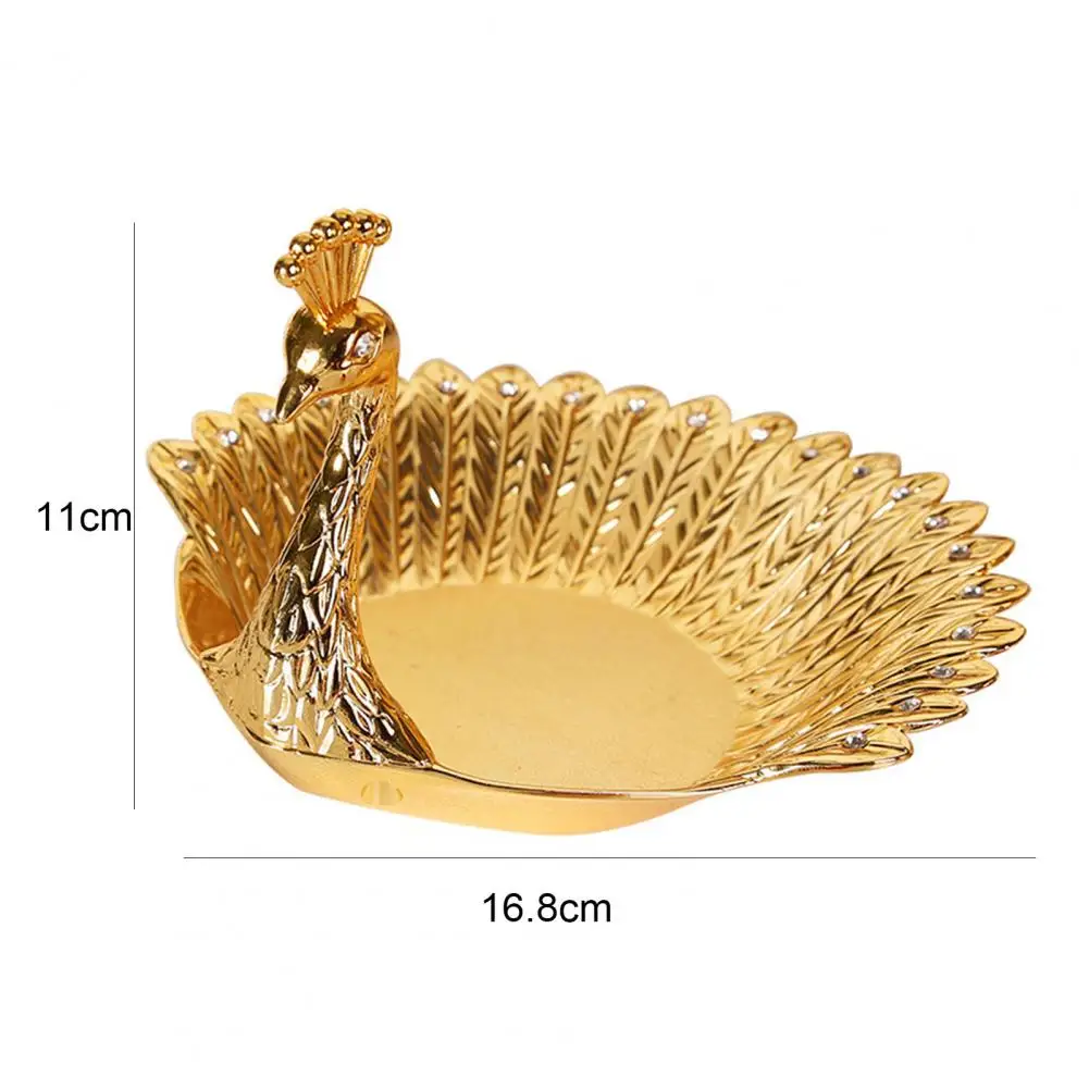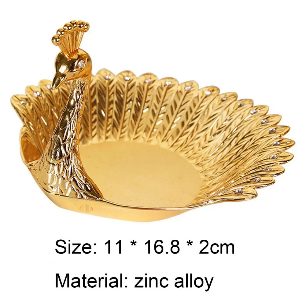 Роскошная металлическая тарелка с золотым павлином, маленькая тарел...