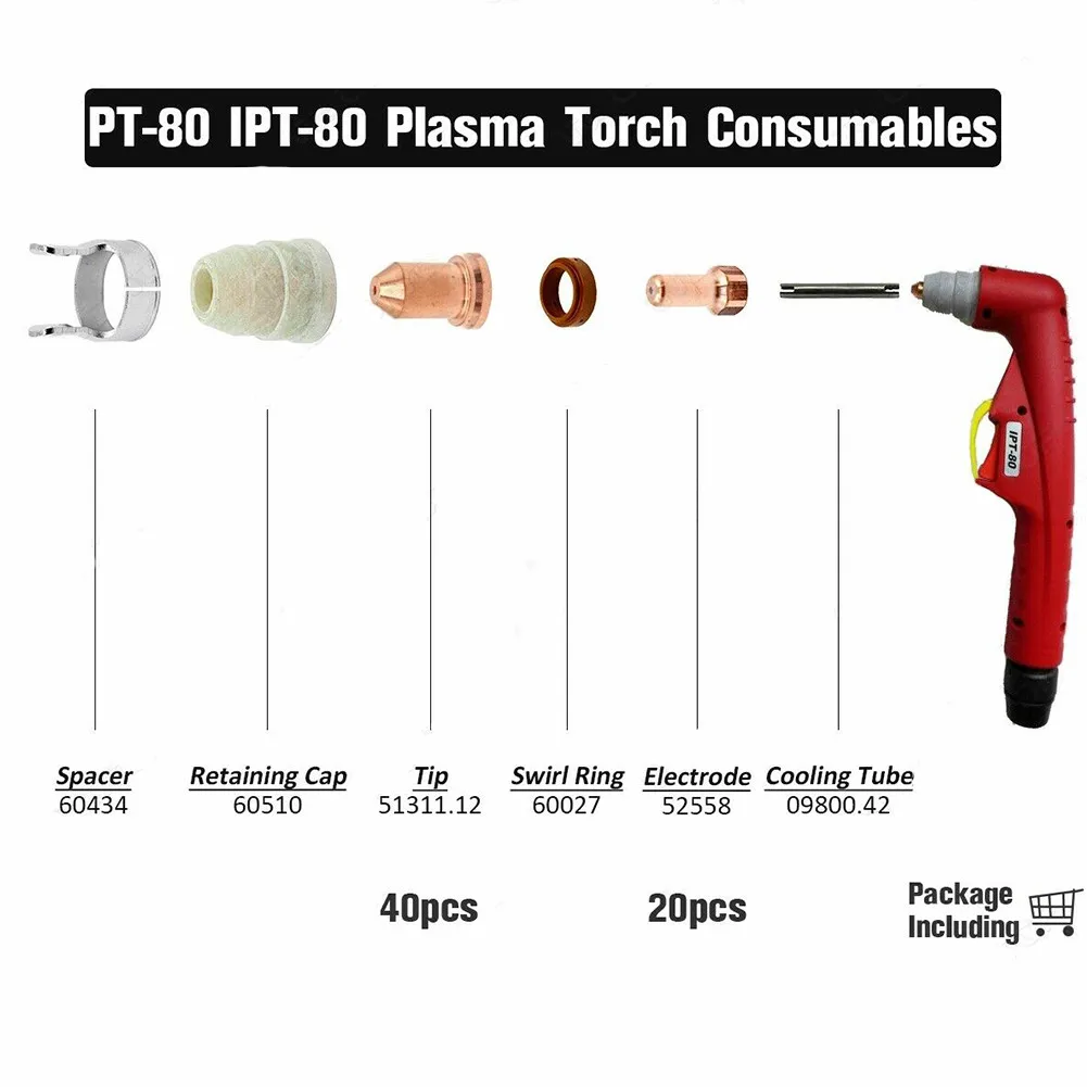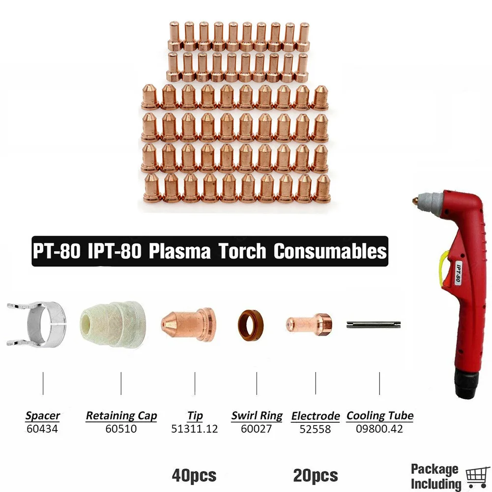 60 шт. SC8004 электрод и флейта, подходит для SC80 PT80 Unimig Razor Cut45 резак, сварочный материал, электрод Насадка-фреза, детали