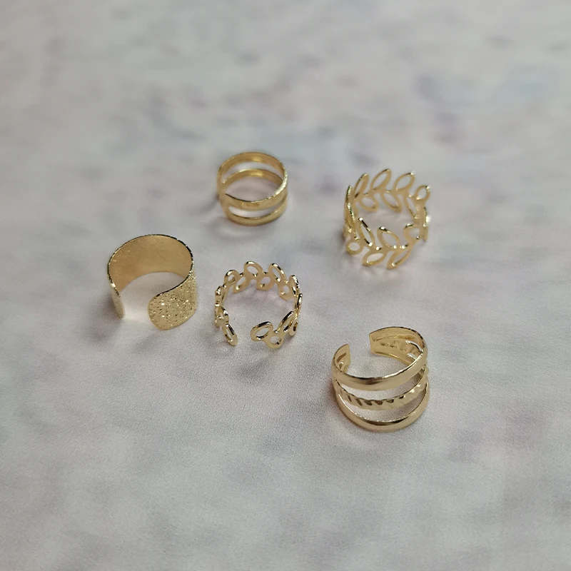 Клипсы-каффы женские, с листьями золотого цвета, 2021, 5 шт.
