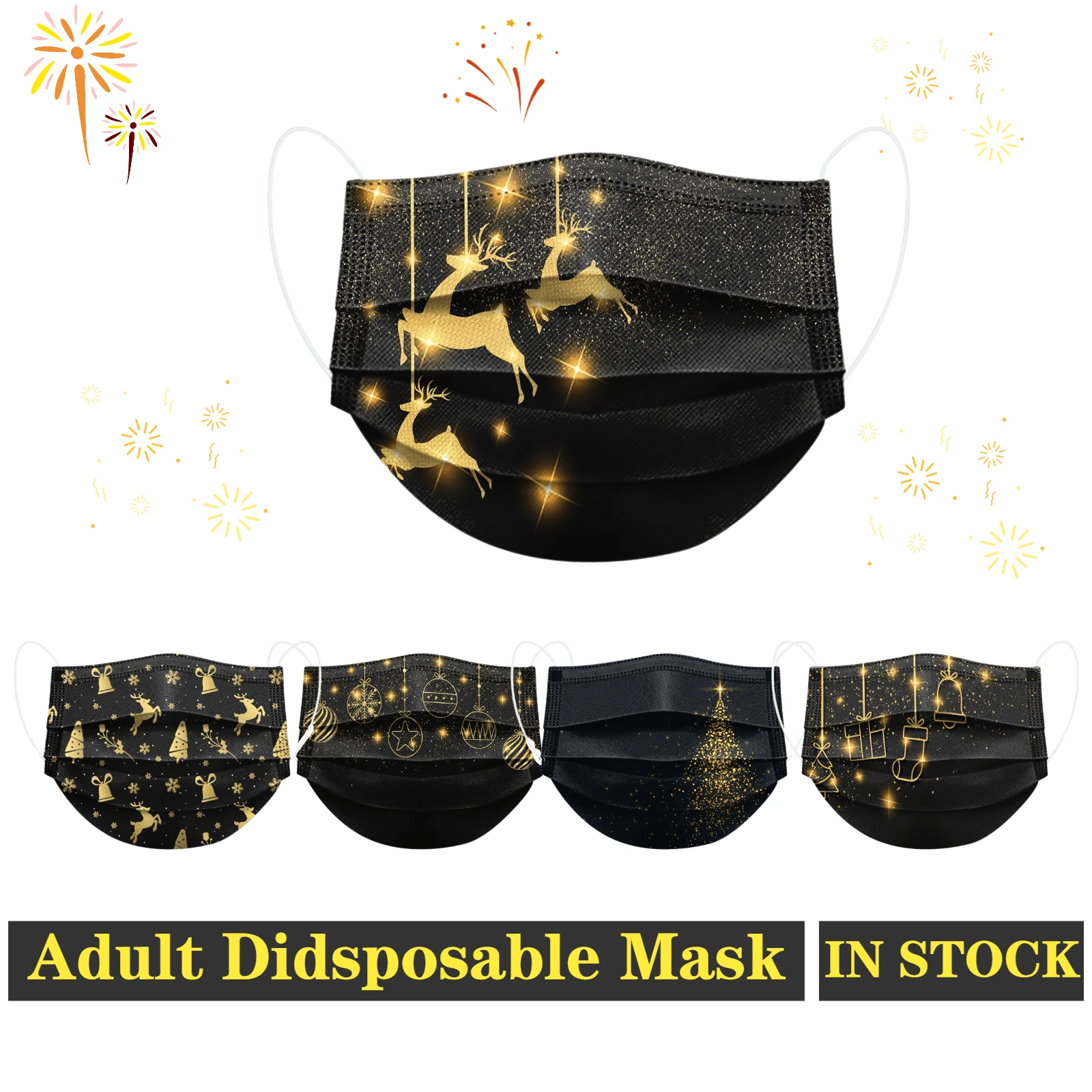 Рождественские маски для лица, одноразовые дыхательные аппараты для взрослых; Рот нос защита, рождественские мотив, 3-х слойные, дышащие, BlackGold серии