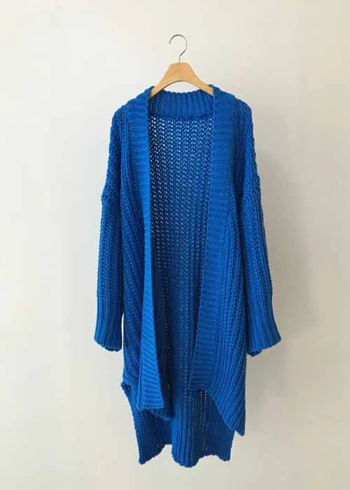Однотонный синий кардиган, свитера для женщин 2021, вязаный кардиган, длинный Модный корейский плотный Повседневный женский свитер с длинным рукавом на осень и зиму