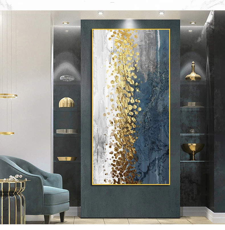 Абстрактная Роскошная Минималистичная синяя Золотая фольга картина ...