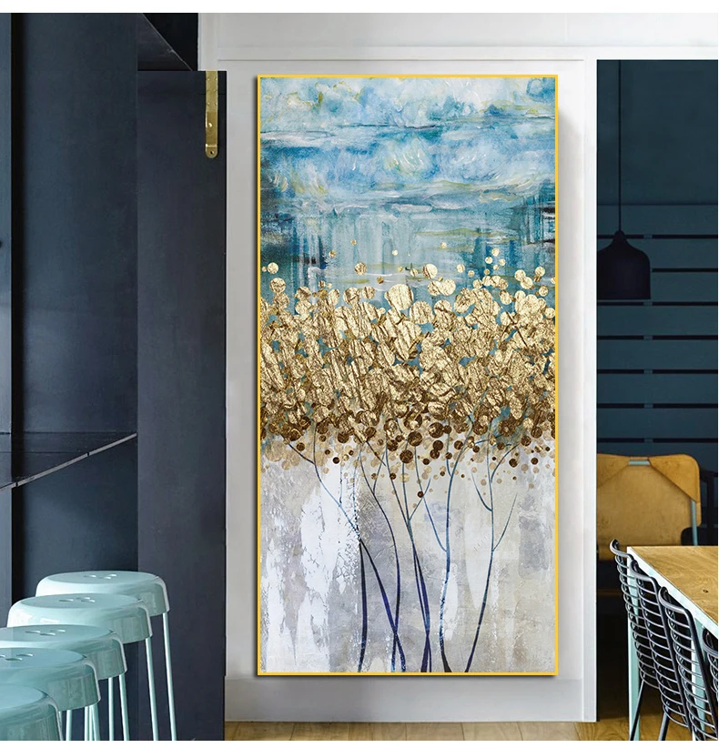Настенные картины с абстрактными деревьями и золотыми листьями, картина маслом на холсте и плакаты Куадрос для гостиной, украшение для дома