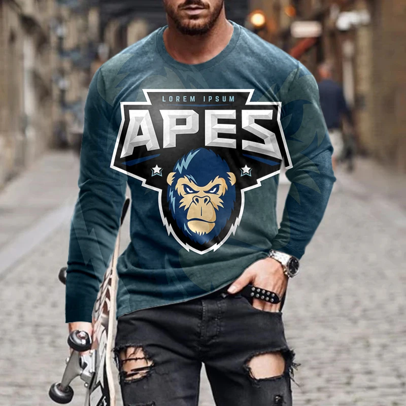 Новинка 2022, Качественная мужская футболка для отдыха, спорта, 3D цифровая печать, Мужская Уличная трендовая футболка с длинным рукавом, плотная эластичная