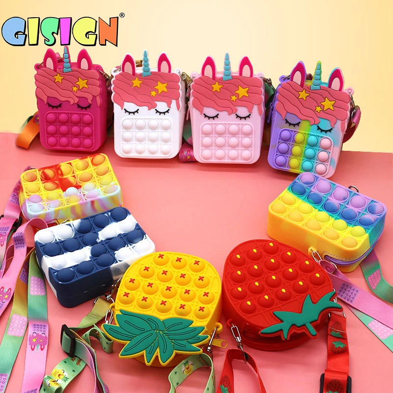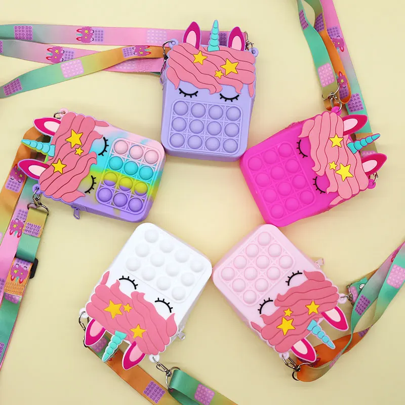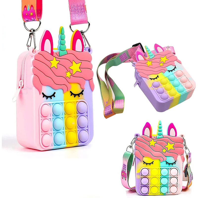 Единорог Fidget Toys сумка с пузырьками, Радужный кошелек для мальчиков, кошелек, простая сумка через плечо для девочек, Рождественский подарок