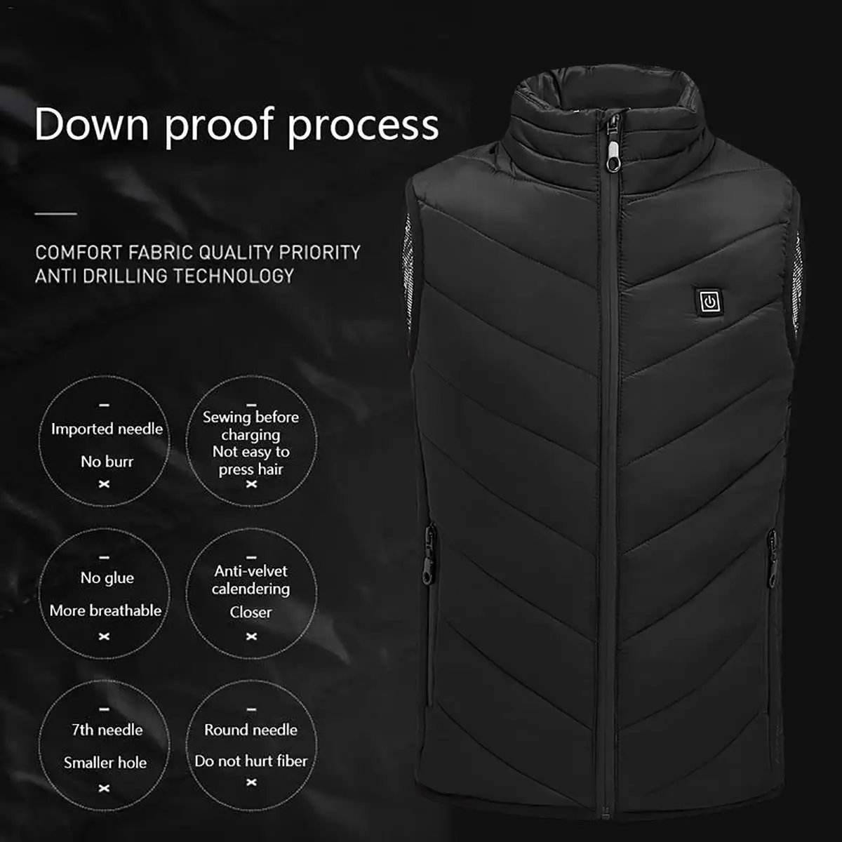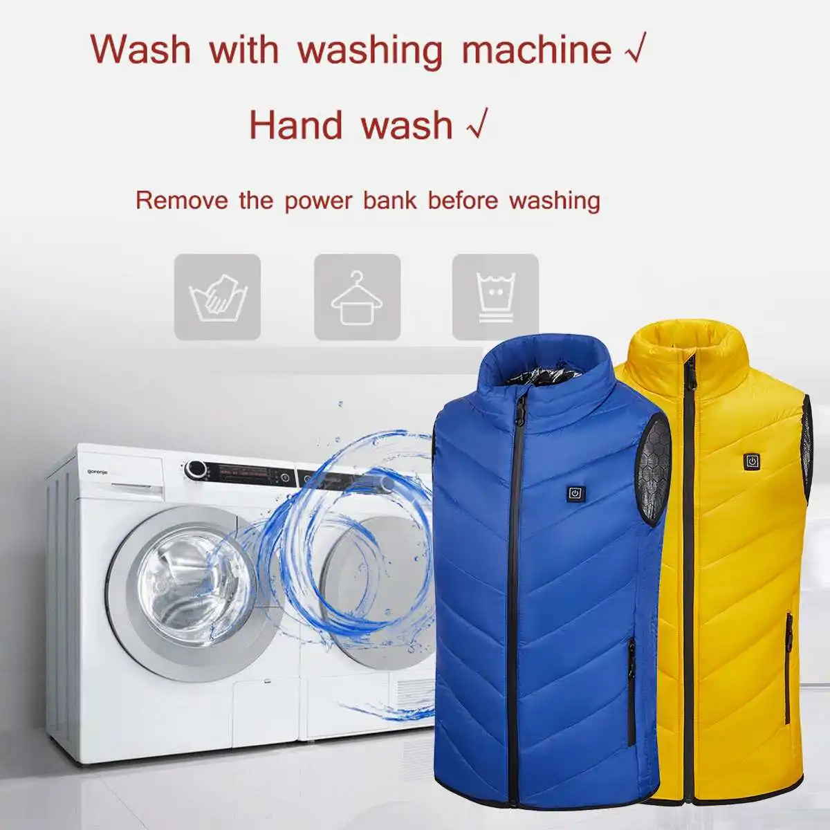 Примечание:1. Не рекомендуется использовать высокую температуру в течение длительного времени, чтобы избежать ожогов.2. Батареи, соединительные вилки и зарядные устройства должны связаться с водой во время работы. Его следует использовать в полностью сухом состоянии.3. ПожалуйстаНе нужноДемонтируйте, измените нагревательную пленку и цепь управления, чтобы предотвратить повреждение горячих компонентов человеком.4. Кабель Водонепроницаемый, можно мыть.5. Люди, чувствительные к воздействию тепла (диабетики, проблемы с кровообращением)Не следует носить жилет с подогревом батареи. Пожалуйста, проконсультируйтесь с вашим врачом перед использованием.6. Всегда подключайте его к источнику питания при нагревании.7.Внешний аккумулятор не входит в комплект поставки.8.Не нужноИспользуйте электричество для влажной одежды. Выключите питание и прекратите использование в дождь.9.Не нужноПодключите непосредственно к зарядному устройству, пожалуйста, используйте мобильное зарядное устройство в качестве источника питания.