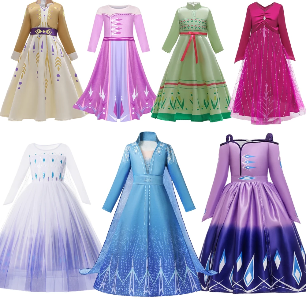Оптовая продажа, одежда для детей, платье принцессы, костюм Снежной королевы с длинным рукавом, костюм Эльзы, Холодное сердце, нарядные платья Анны для Хэллоуина и вечеринки для девочек