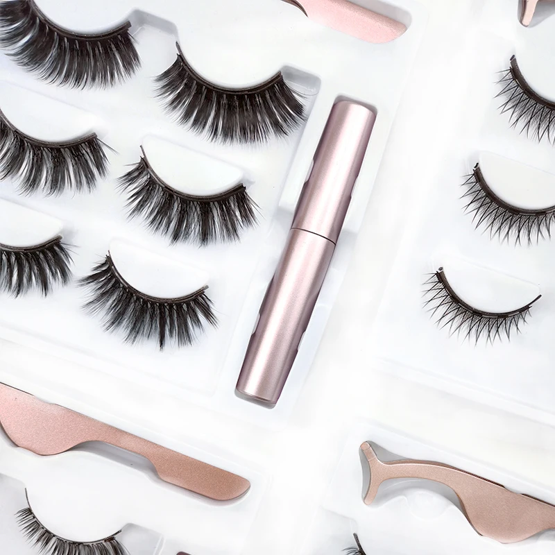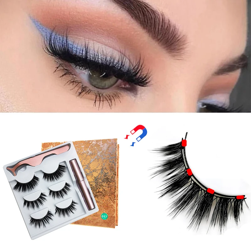 Набор натуральных длинных магнитных ресниц, жидкая подводка для глаз и магнитные накладные ресницы и пинцет, набор для макияжа