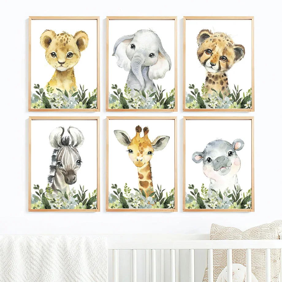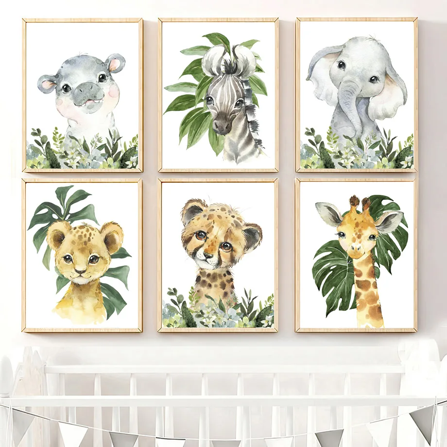 Милый Лев Жираф Зебра Гепард джунгли животные настенное искусство CanvasNordic постеры картина и печать настенные картины декор детской комнаты